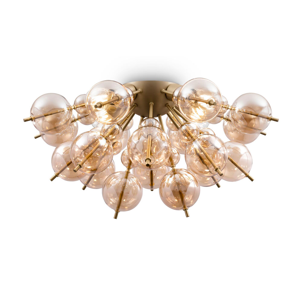Плафон с елементи от духано стъкло Bolla в цвят кехлибар и месинг