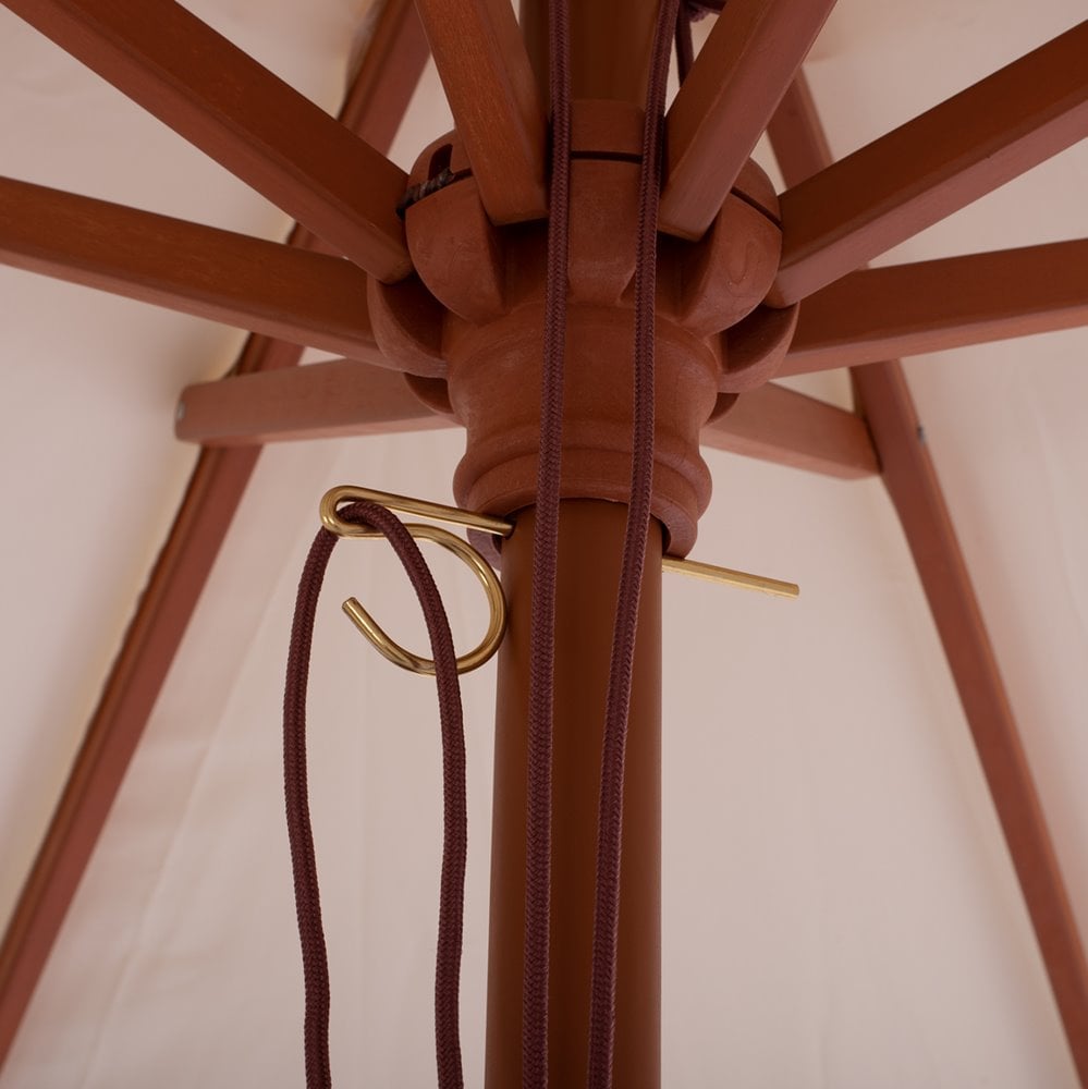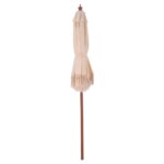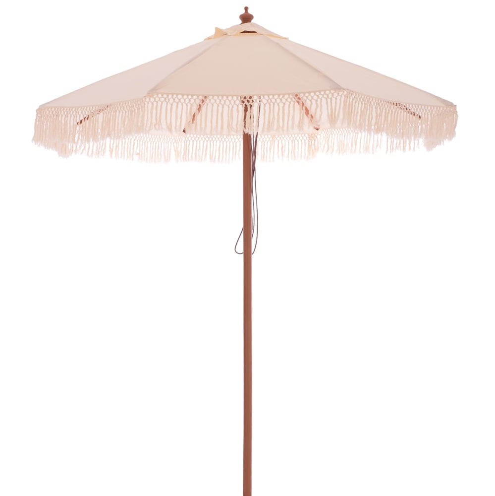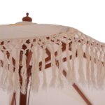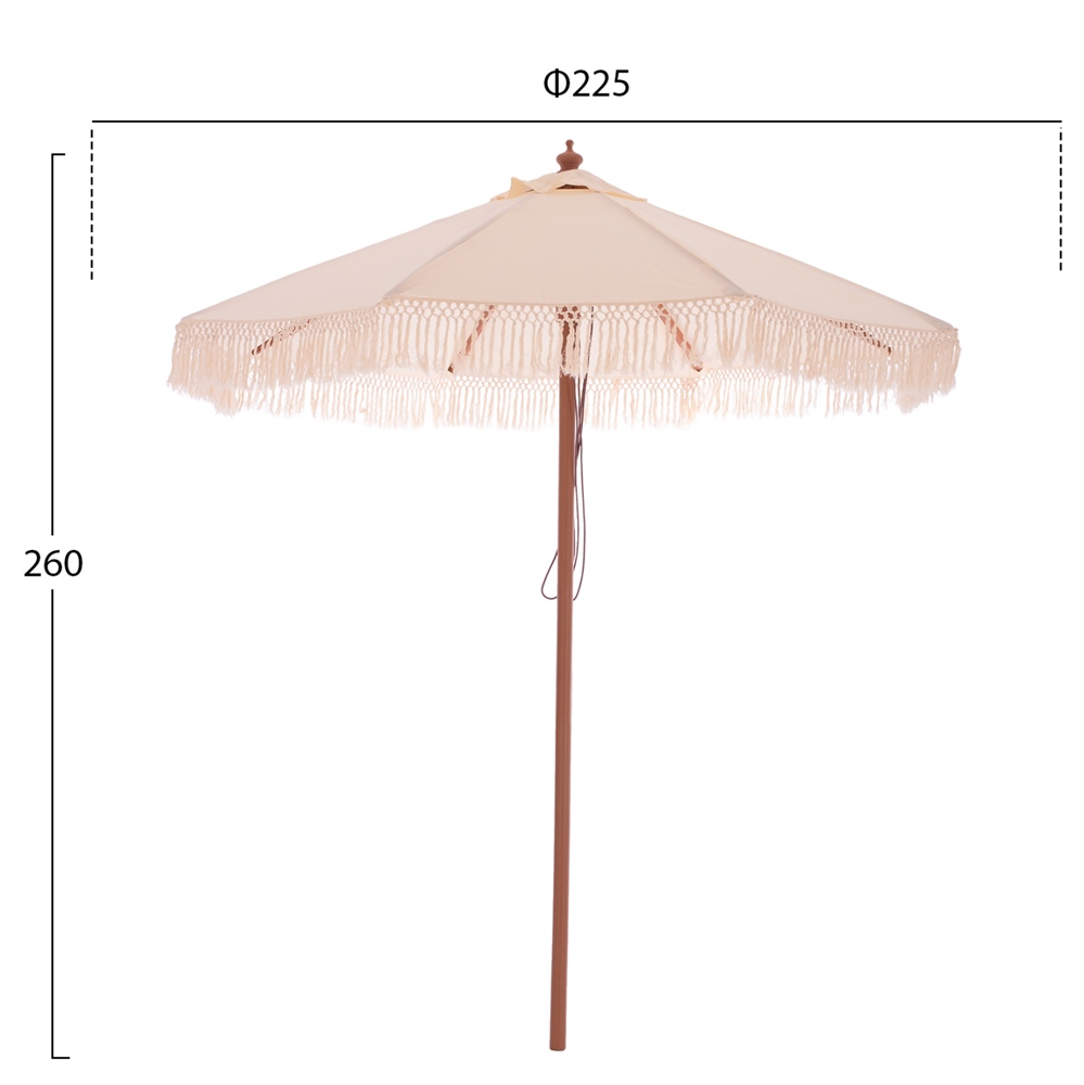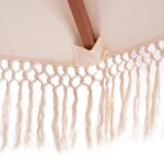 Плажен чадър с дървена рамка, 8 спици, двоен скрипец и ресни от макраме в бежово, Джеси.