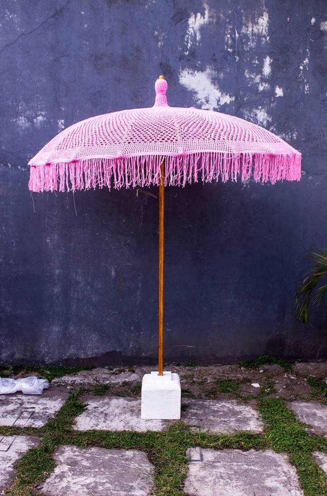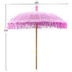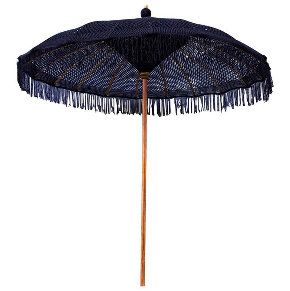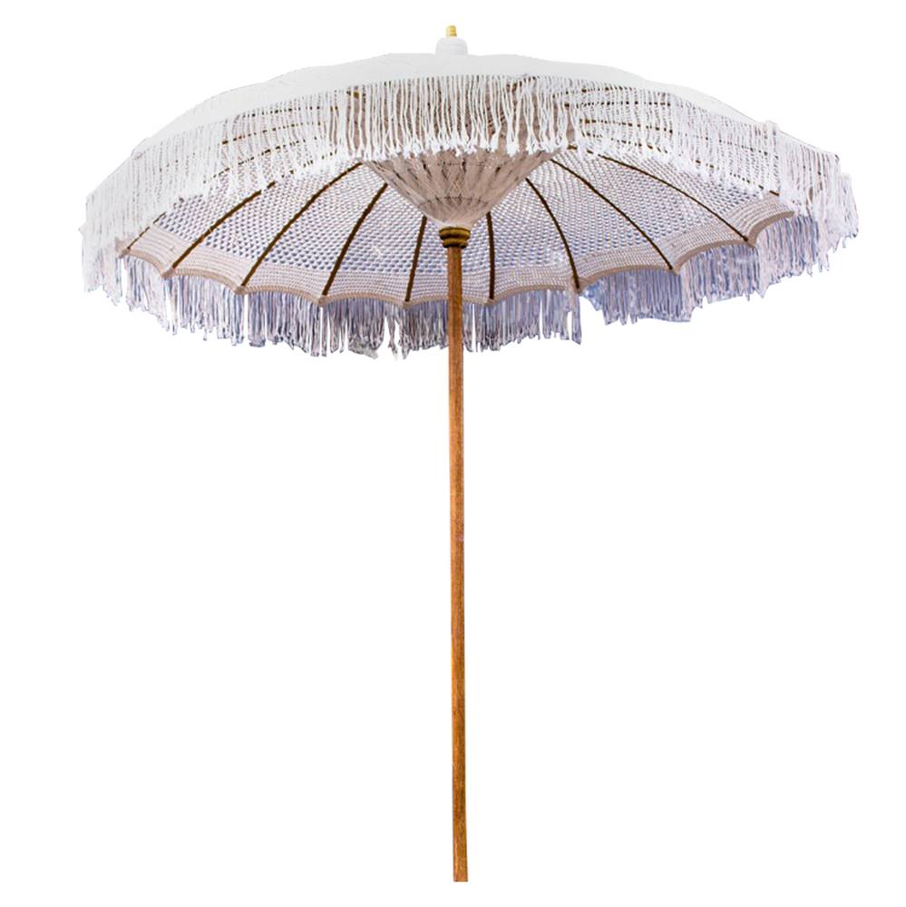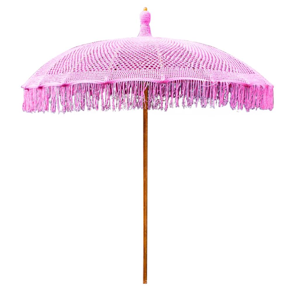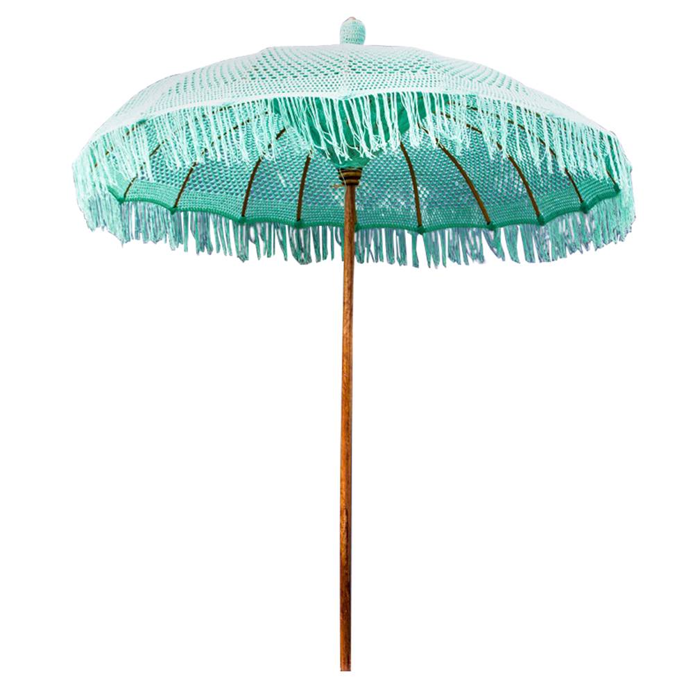 Плажен чадър с шапка от ръчноплетено макраме, оребрение от бамбук и основа от масивно тиково дърво, Съни.