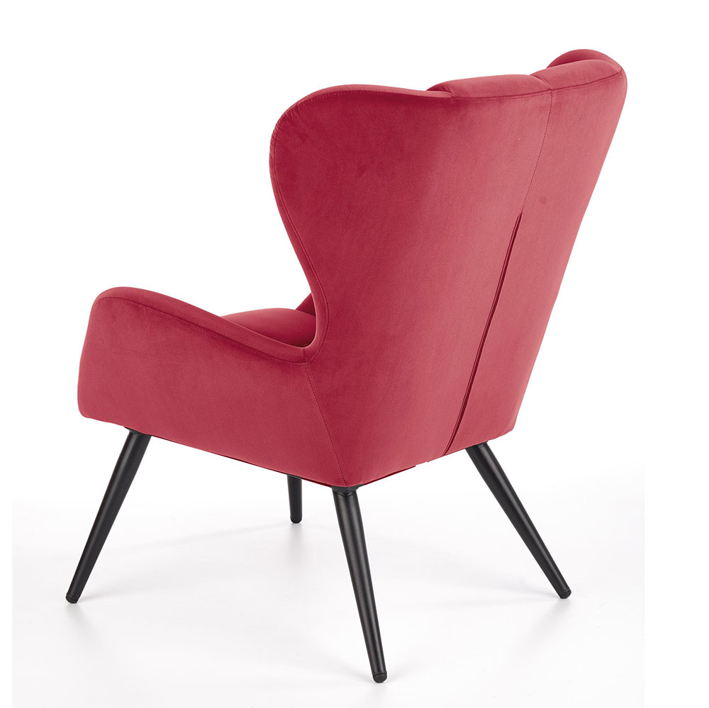 Плюшено кресло със дървени крака в цвят бордо - изглед отзад