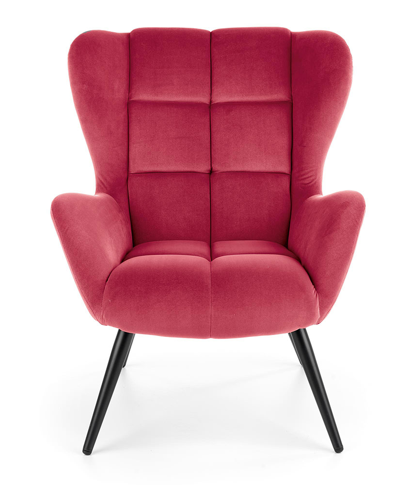 Плюшено кресло със дървени крака в цвят бордо - отпред