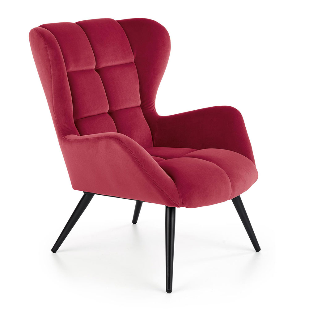 Плюшено кресло със дървени крака в цвят бордо