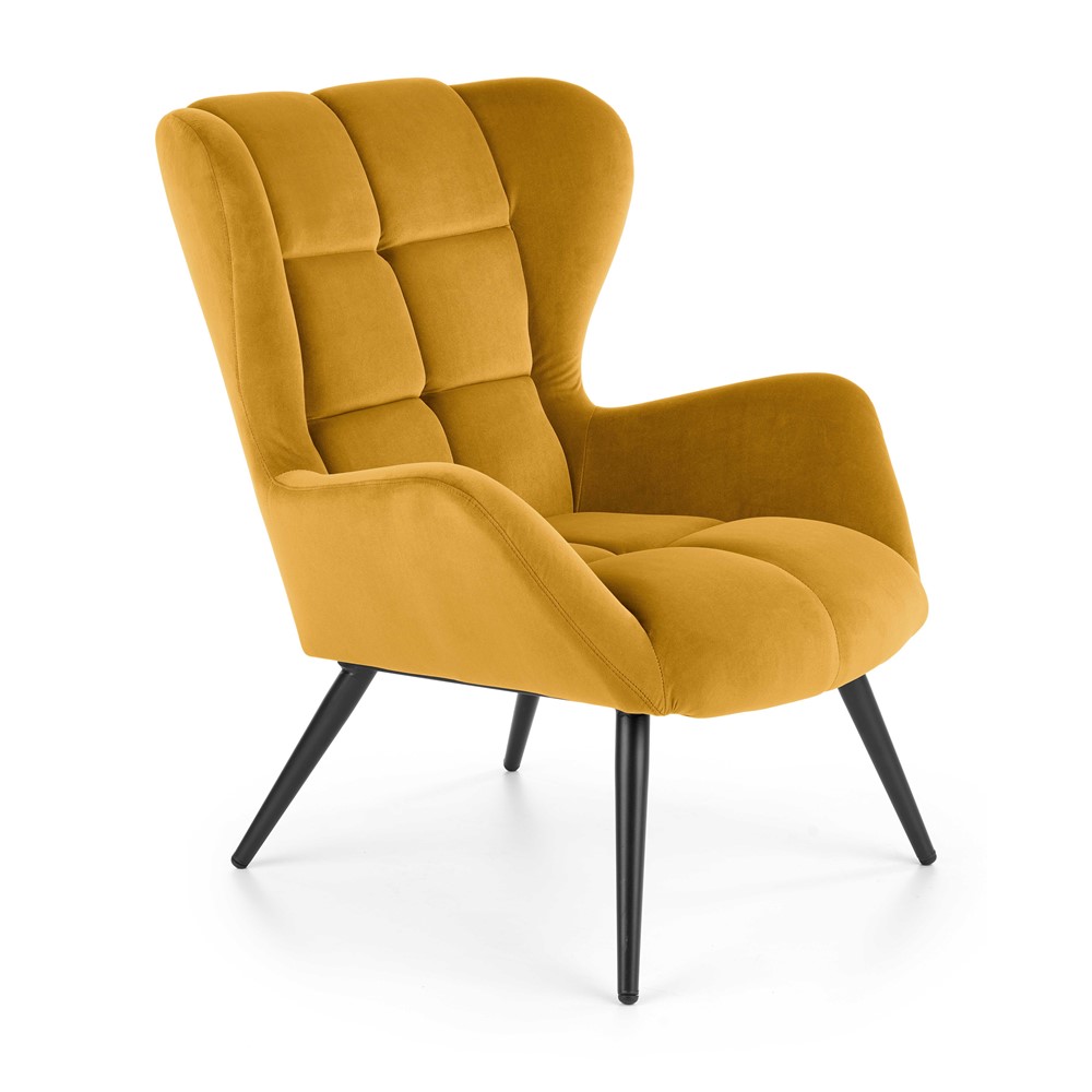 Плюшено кресло с дървени крака (5 цвята) - горчица