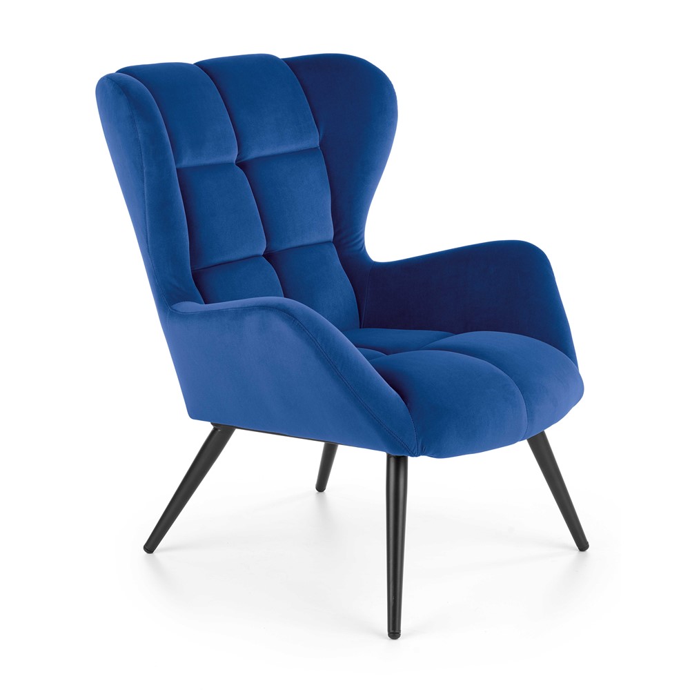Плюшено кресло с дървени крака (5 цвята) - син