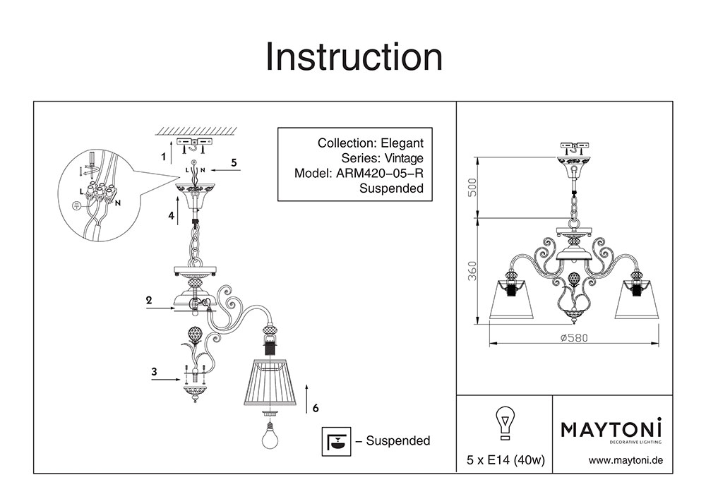 - Размери: диаметър – 58 см, височина – 36-86 см, основа – ∅11 х 7 см, дължина на веригата – 50 см