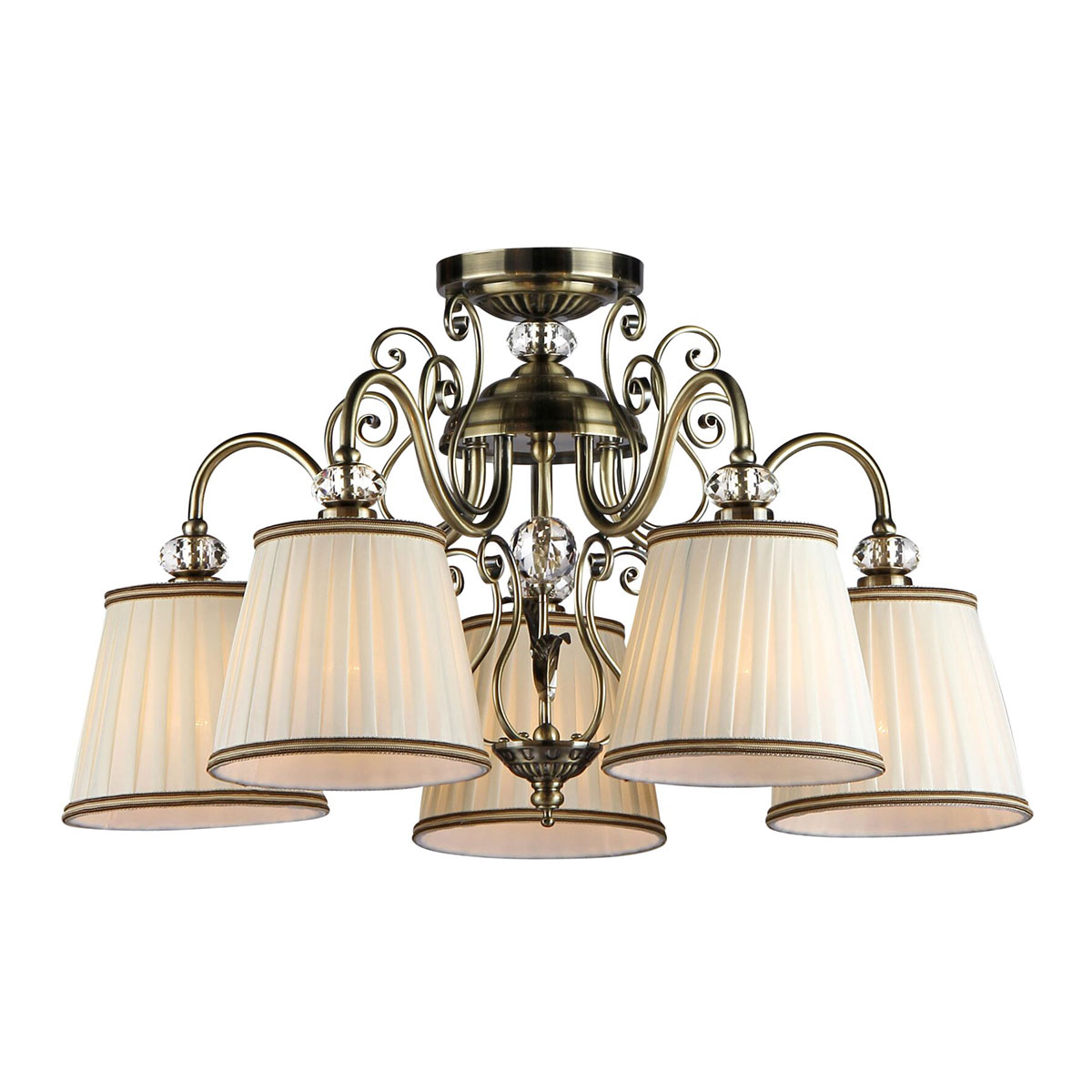 Красив полилей, изработен от метал в цвят античен бронз с декоративни елементи и бели плисирани шапки от органза в конусовидна форма Maytoni, серия Vintage.