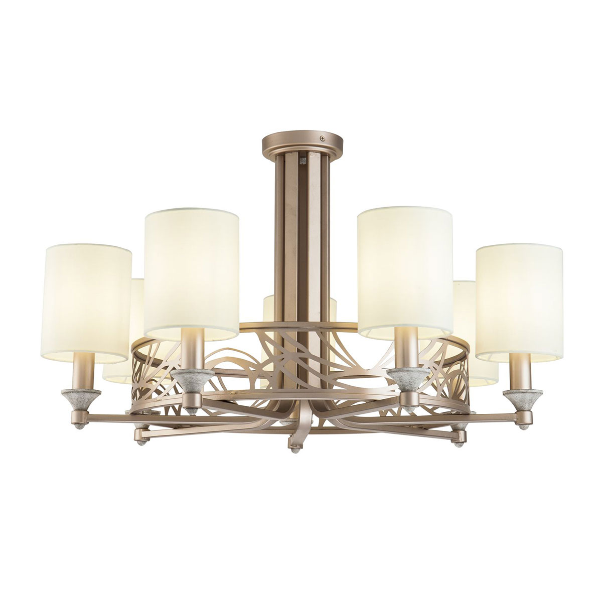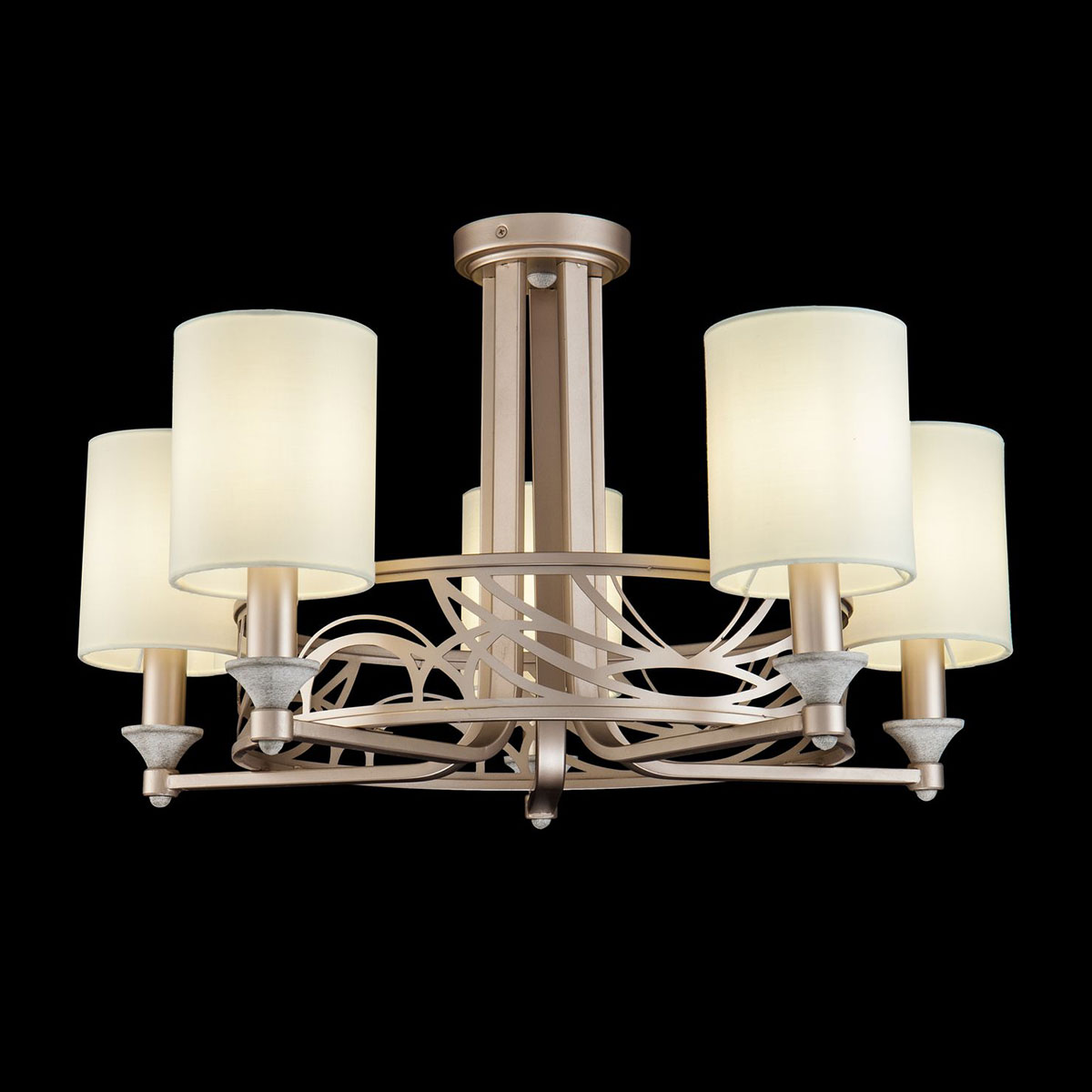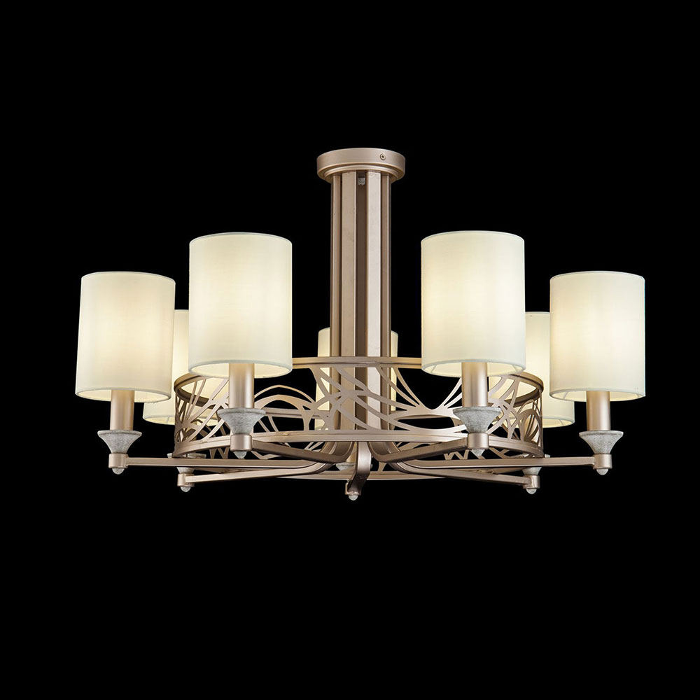 Стилен полилей с метална конструкция в златисто с декоративни елементи и текстилни шапки върху PVC рамка в цвят крем Maytoni, серия Vittoria.