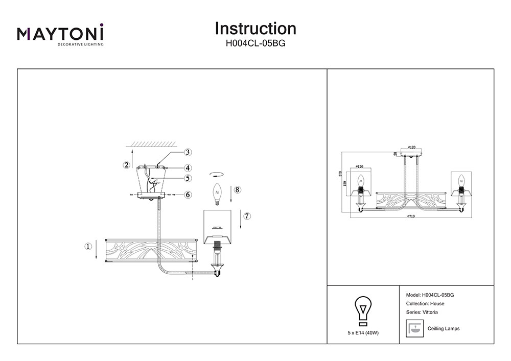 Вариант 2: диаметър – 79 см, ширина – 15 см, височина – 43 см, тяло – ∅ 12 х 15 см, основа – 12 х 2,8 см - Мощност: 5 или 7 х 40W