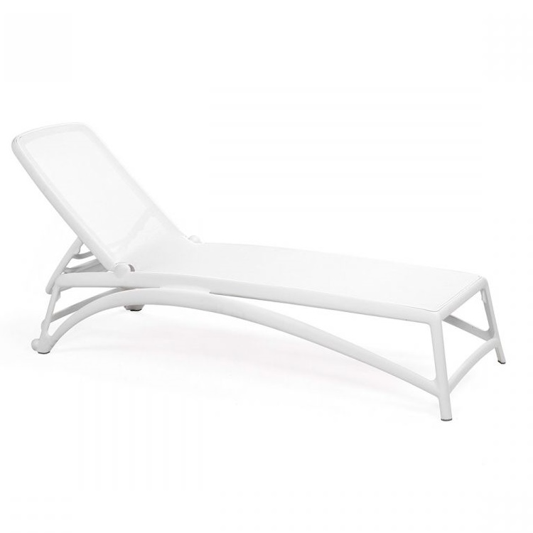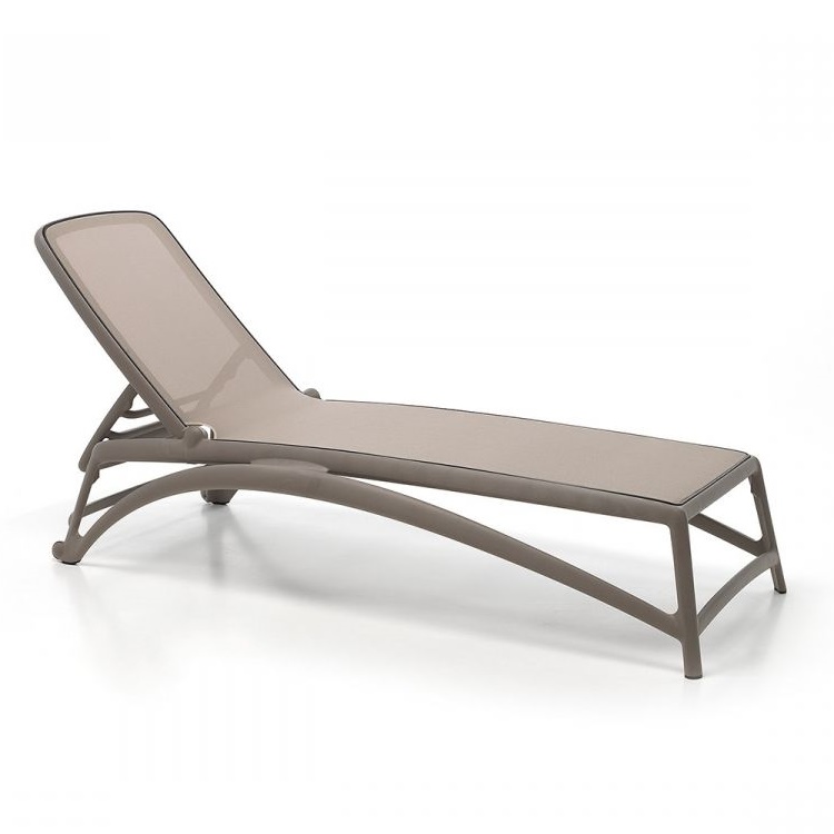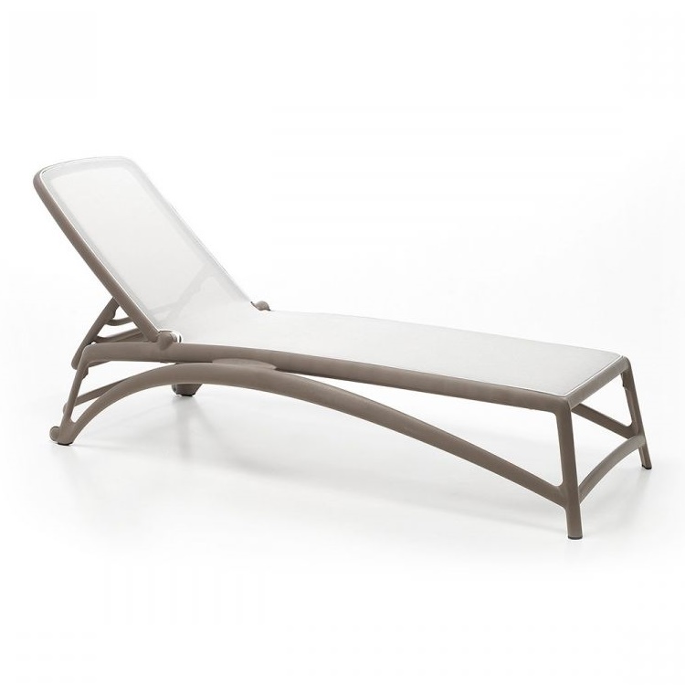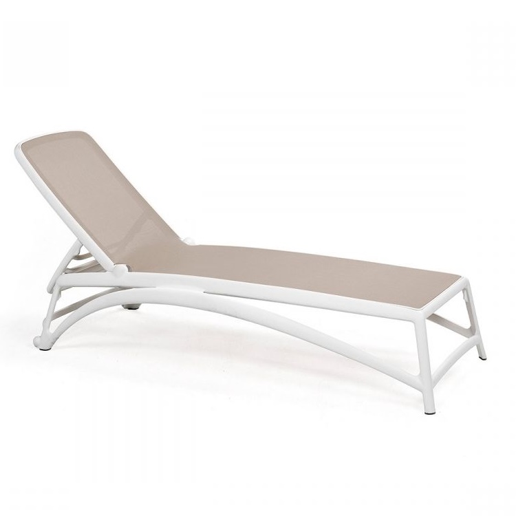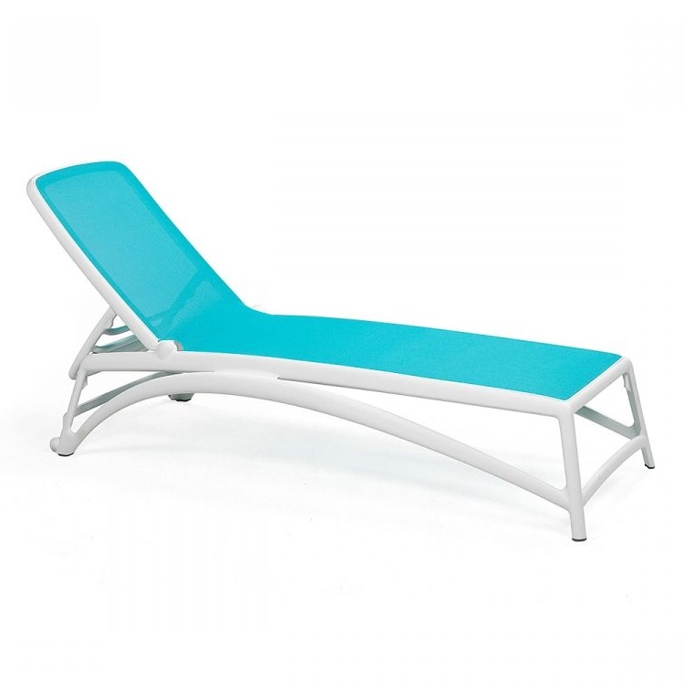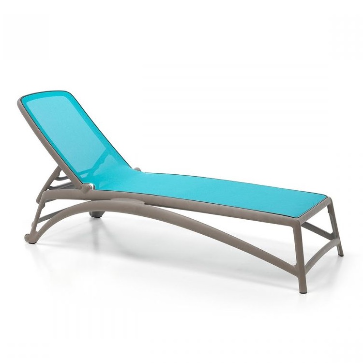 Удобен полиприпиленов шезлонг с повдигащ гръб в 4 различни позиции. Изработен е с дишаща синтетична мрежеста тъкан, която може да подменя.
