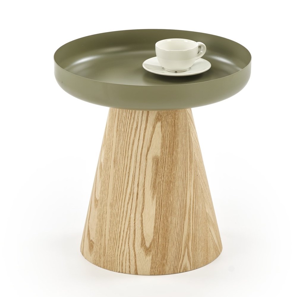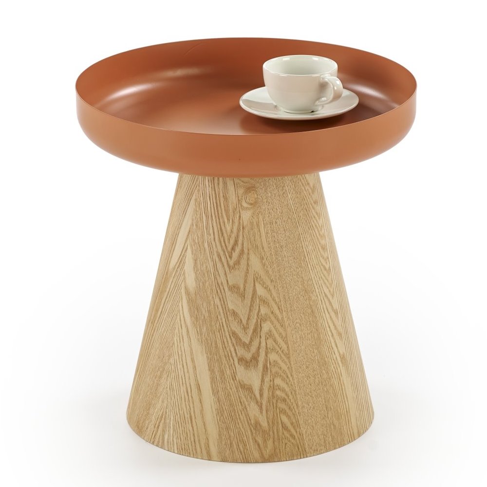 Изработена е от MDF с естествен фурнир и прахово боядисана стомана.