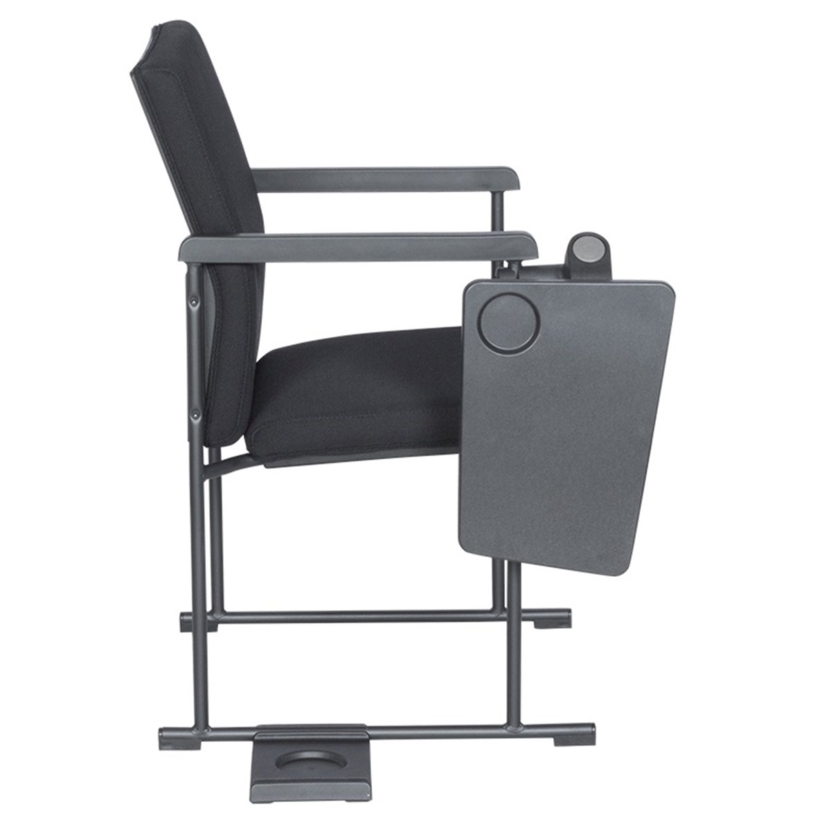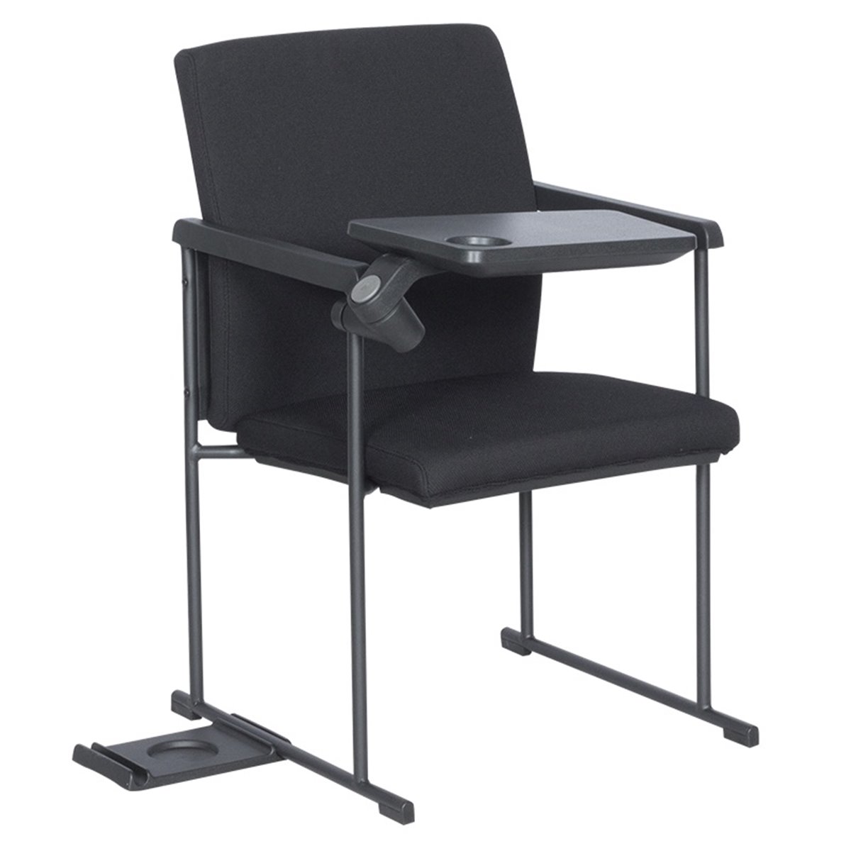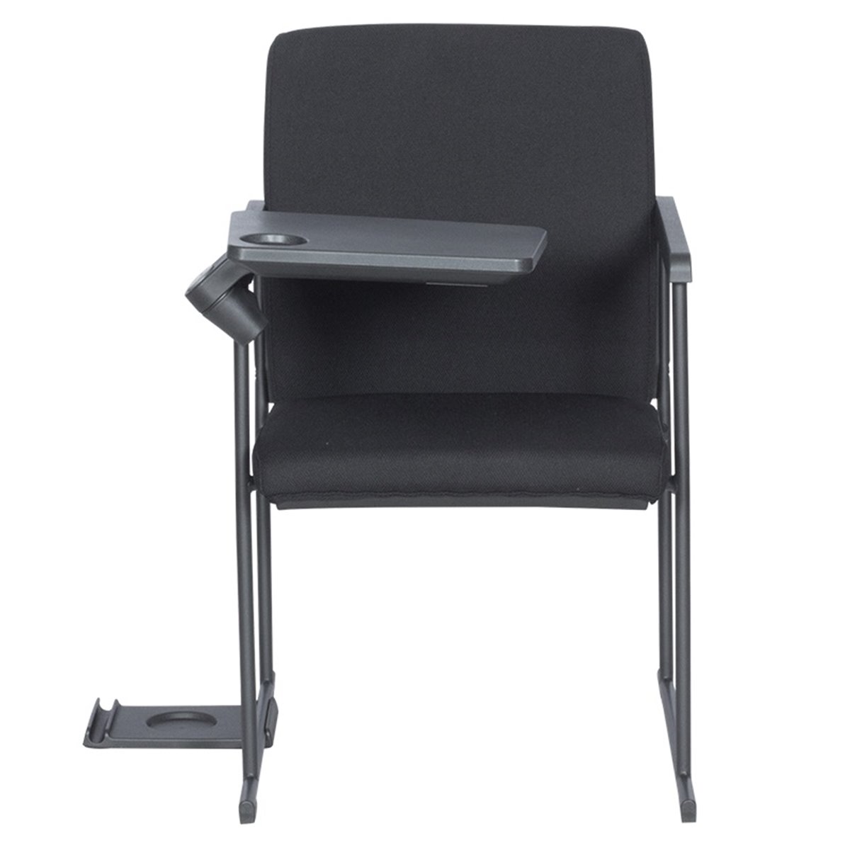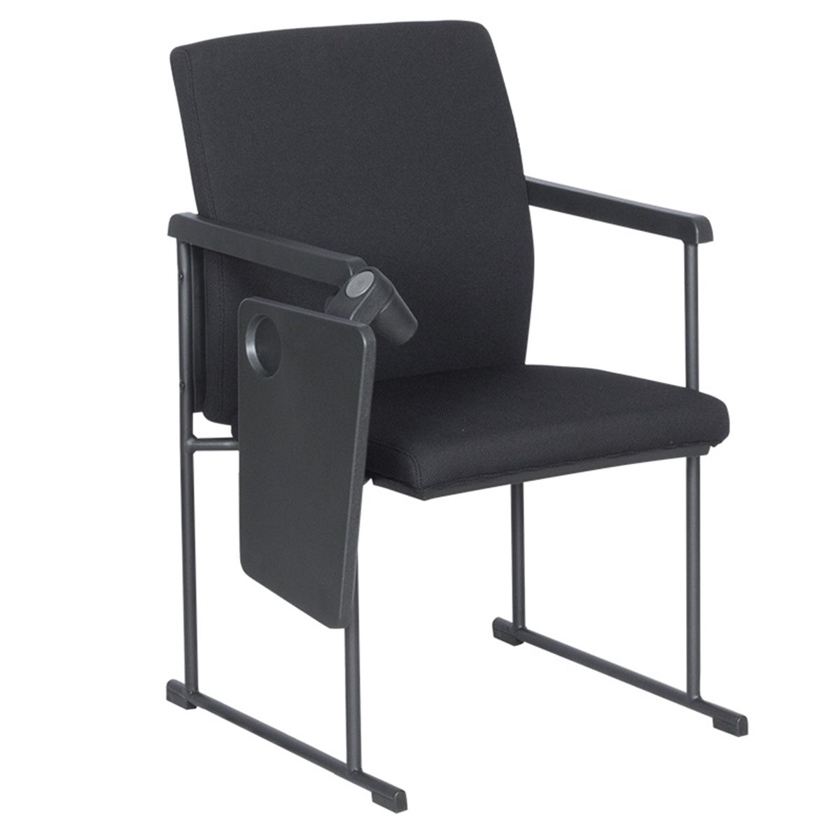 Посетителски офис стол с вградена подвижна маса, която може да се заключва или прибира с помощта на бутон. Изключително удобна е за водене на бележки, да се постави лаптоп или друго електронно устройство.