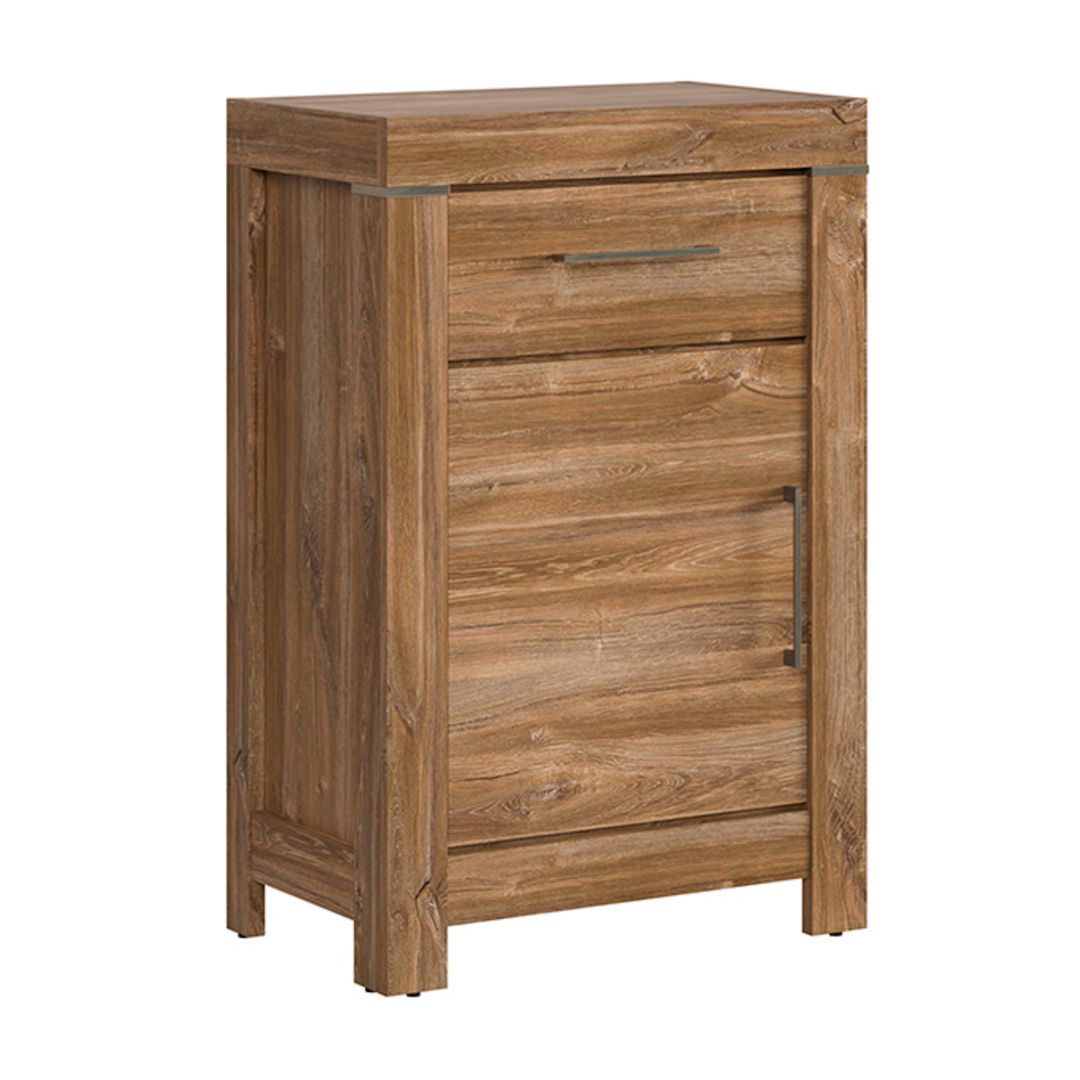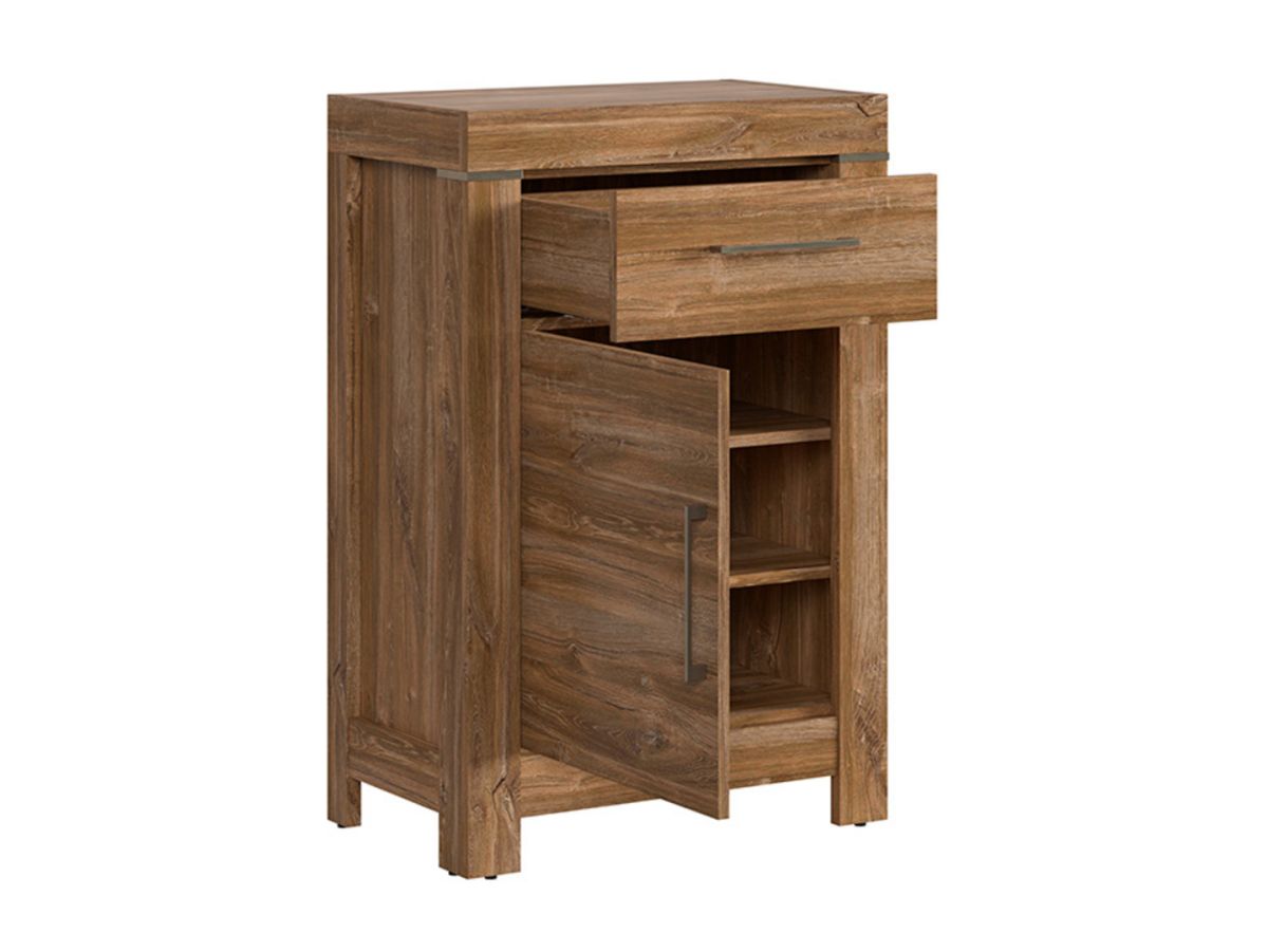 Практичен шкаф за антре в дървесен цвят дъб стърлинг, оборудван с два рафта и чекмедже, модулна система Гент.
