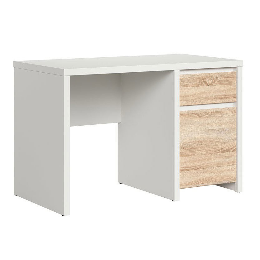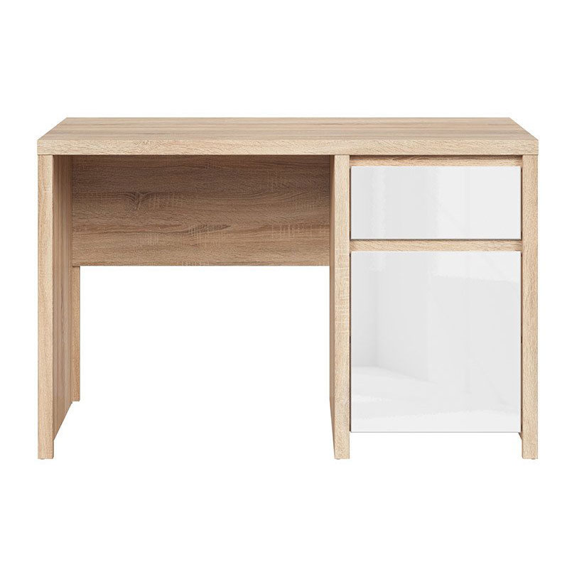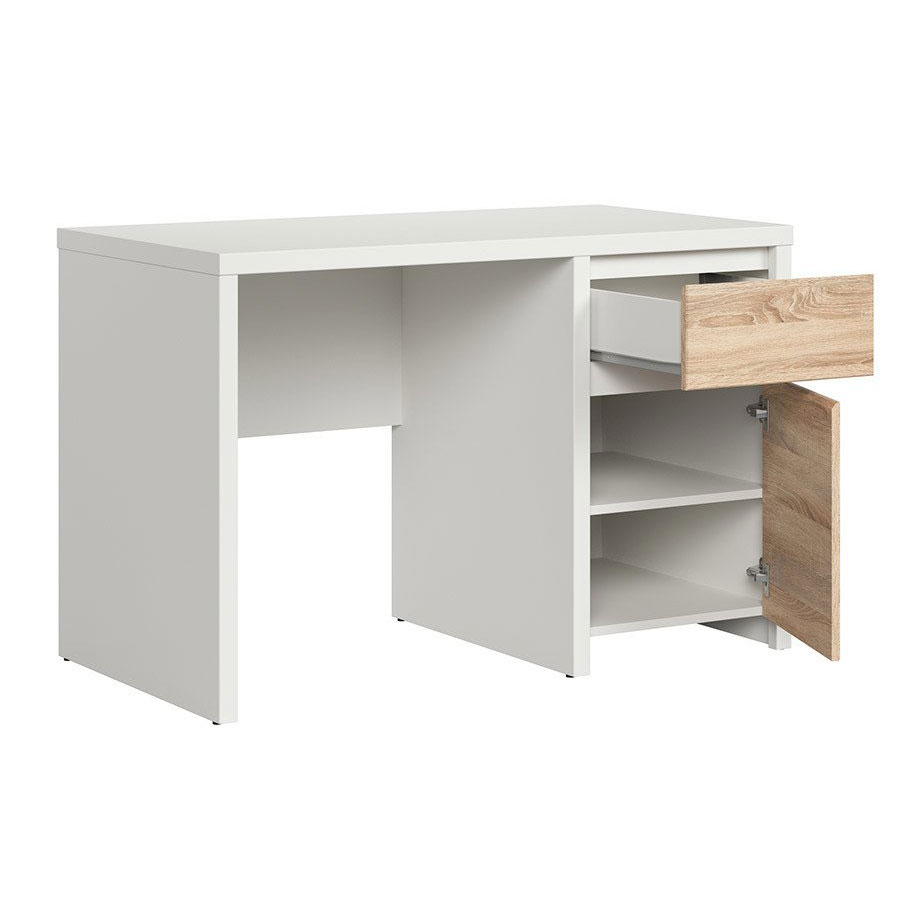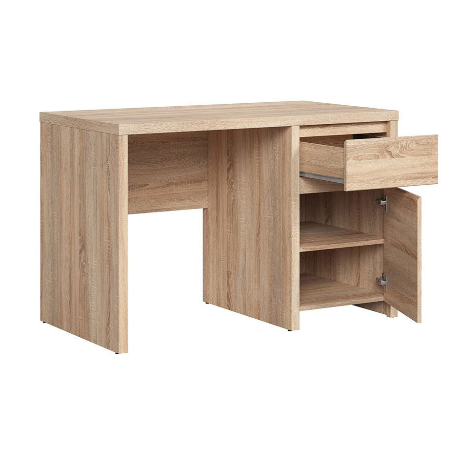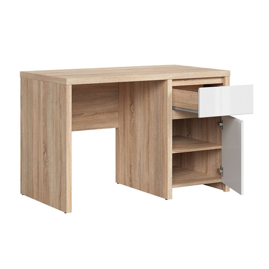 Практично работно бюро от ПДЧ с чекмедже и вратичка в три варианта – дъб сонома, бял корпус с лицева част в дъб сонома, корпус в дъб сонома с лицева част в бял гланц, модулна система Каспиан Дъб.