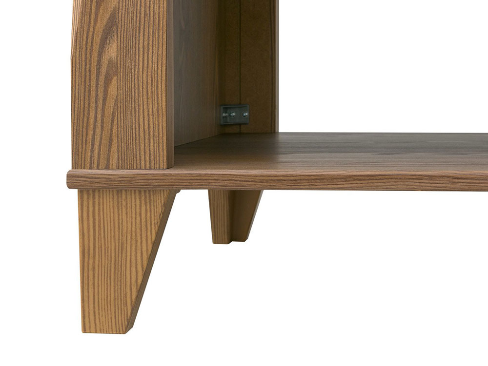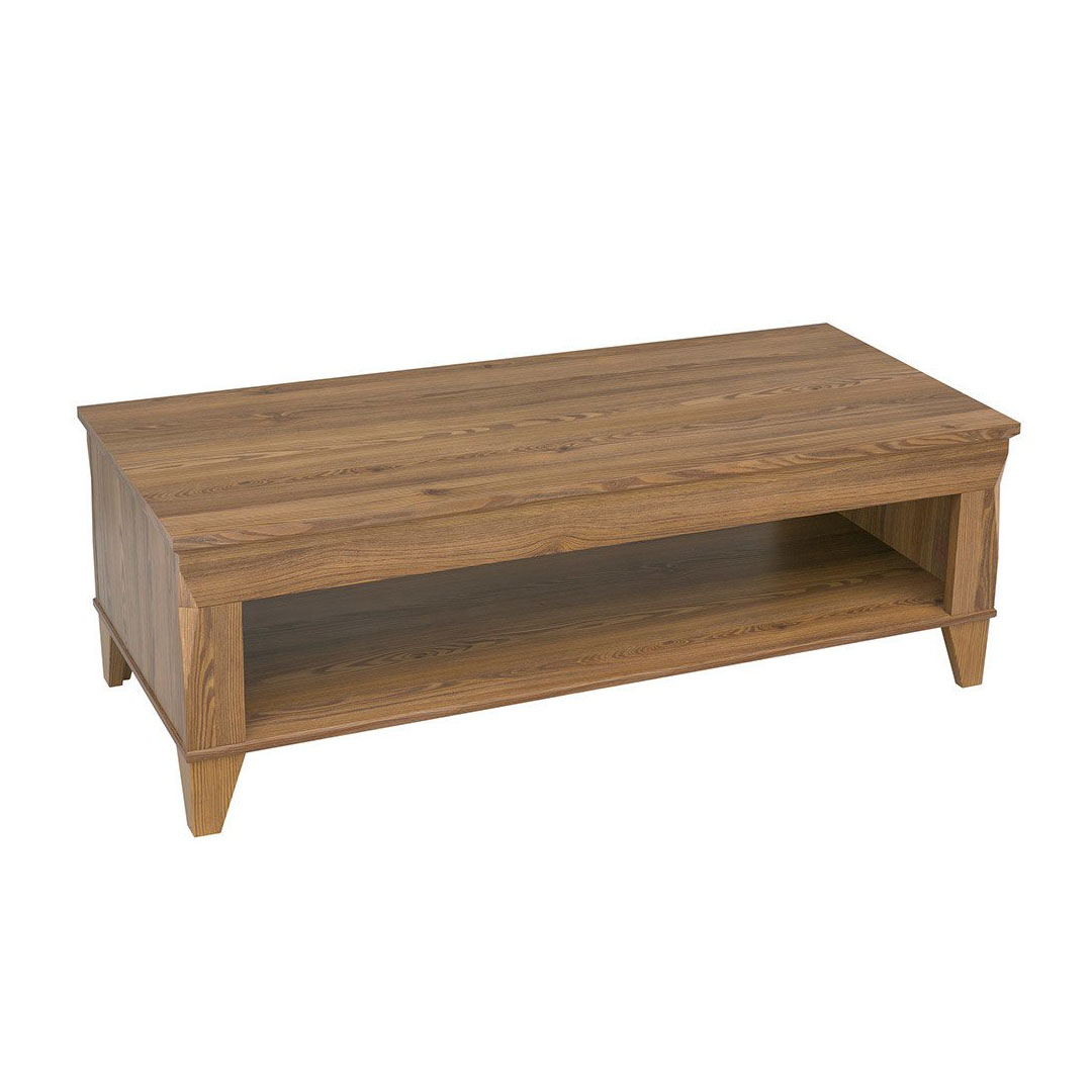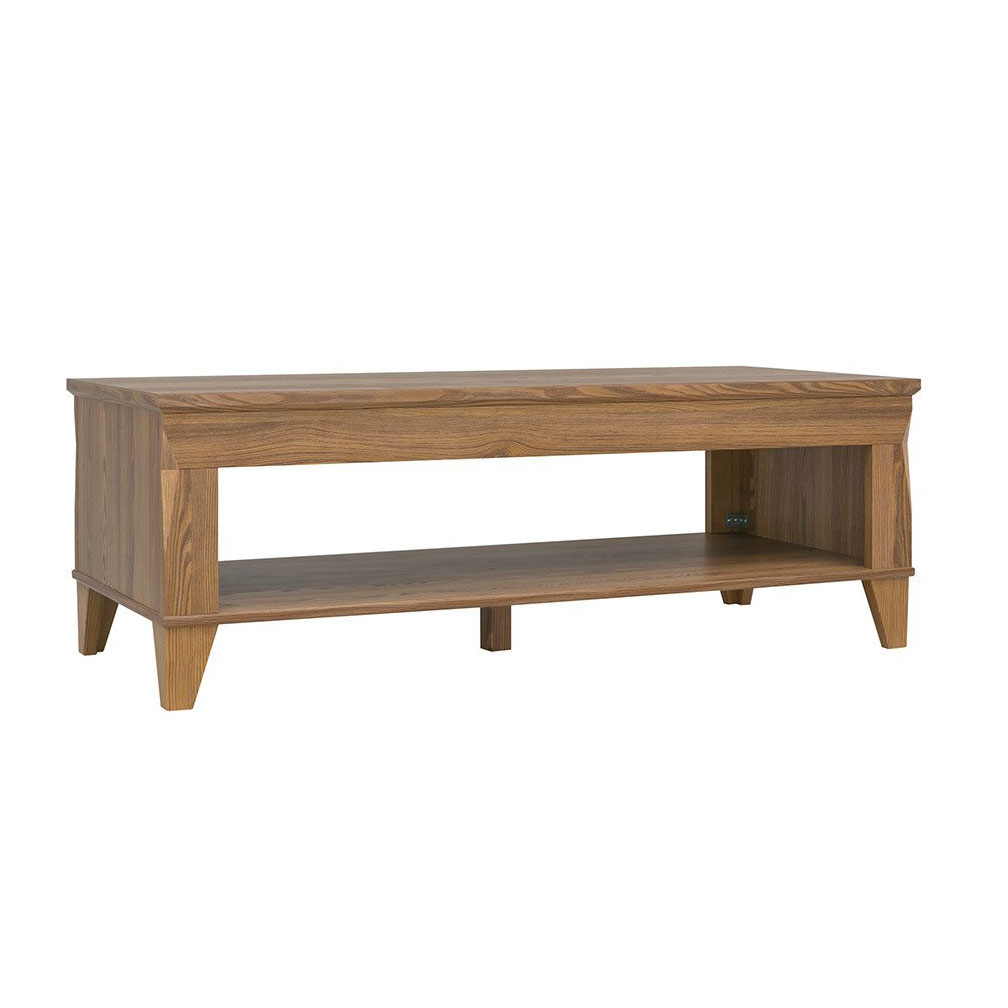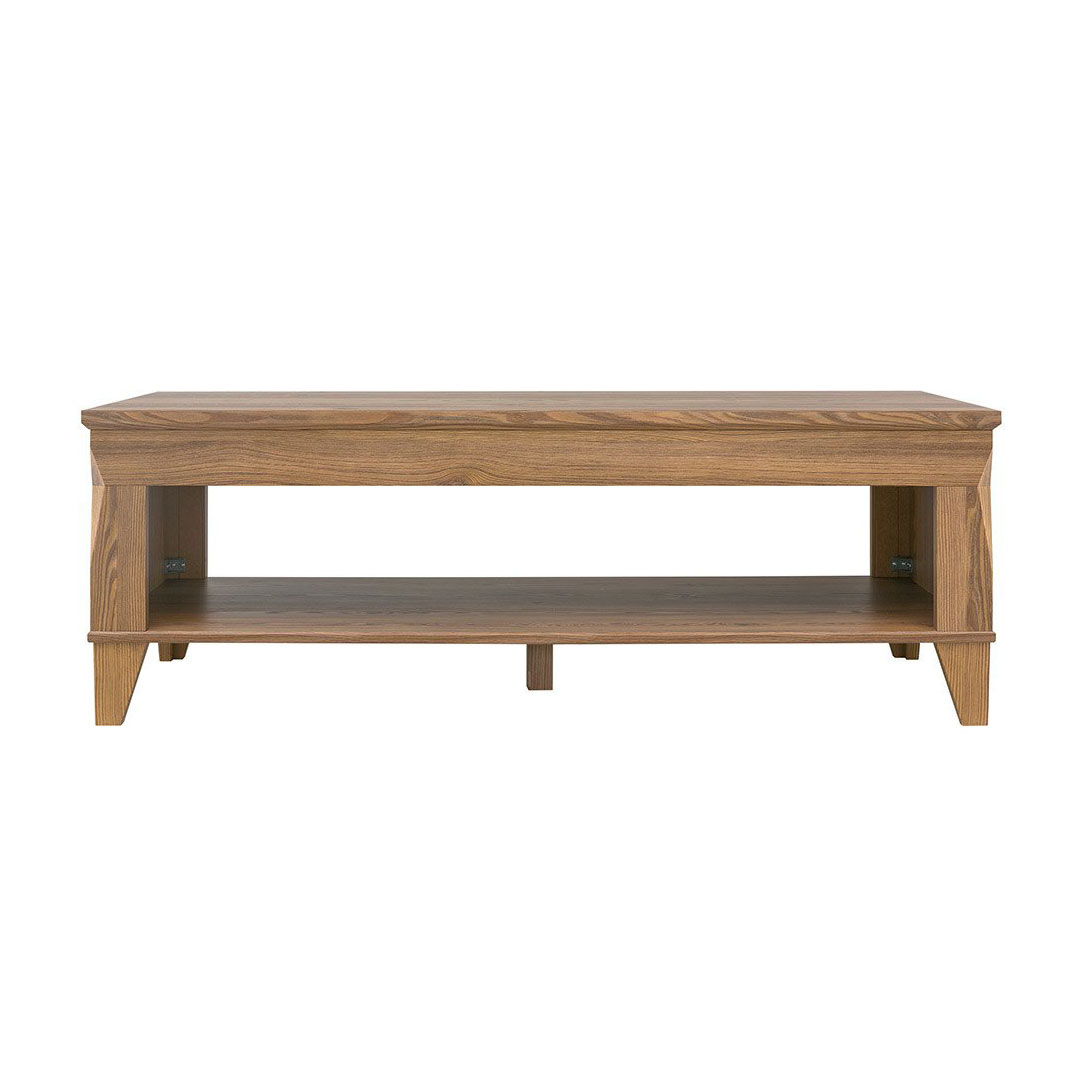 Правоъгълна холна маса с рафт и красиво изрязани детайли, изработена от ПДЧ и МДФ в цвят златна лиственица, модулна система Берген.