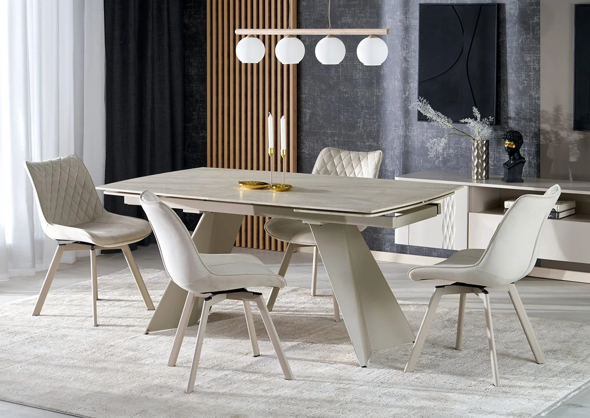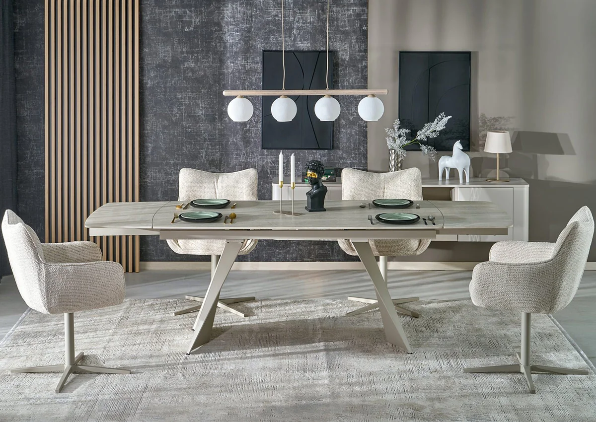 Правоъгълна трапезна маса Armani травертин е функционално решение за ежедневно ползване и за големи събирания, съчетаващо здрава конструкция и стилен дизайн.