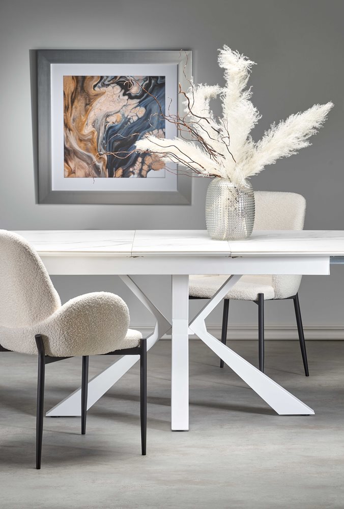 Правоъгълна трапезна маса с интересна основа и функция разтягане.