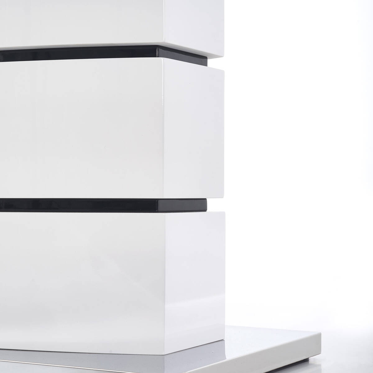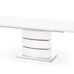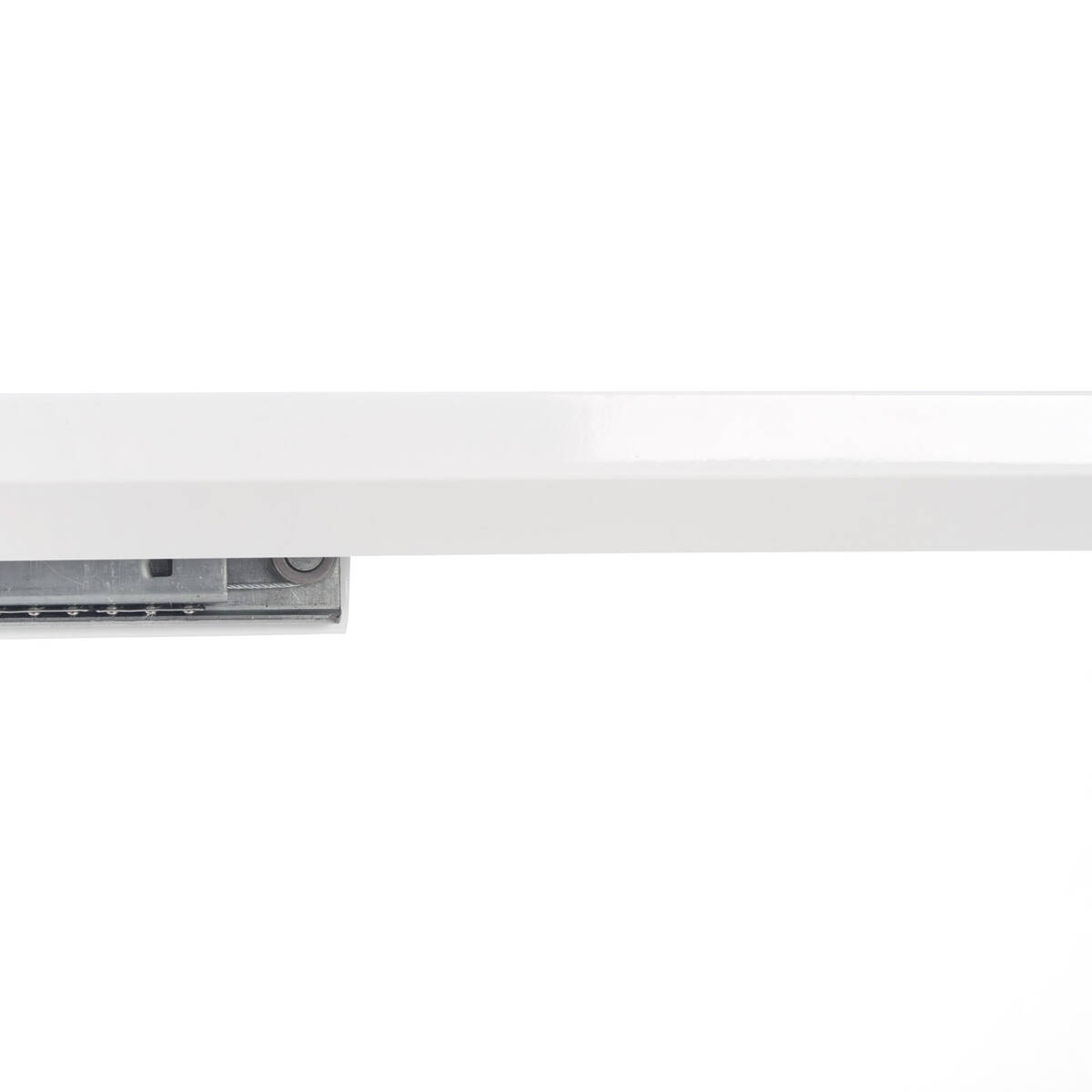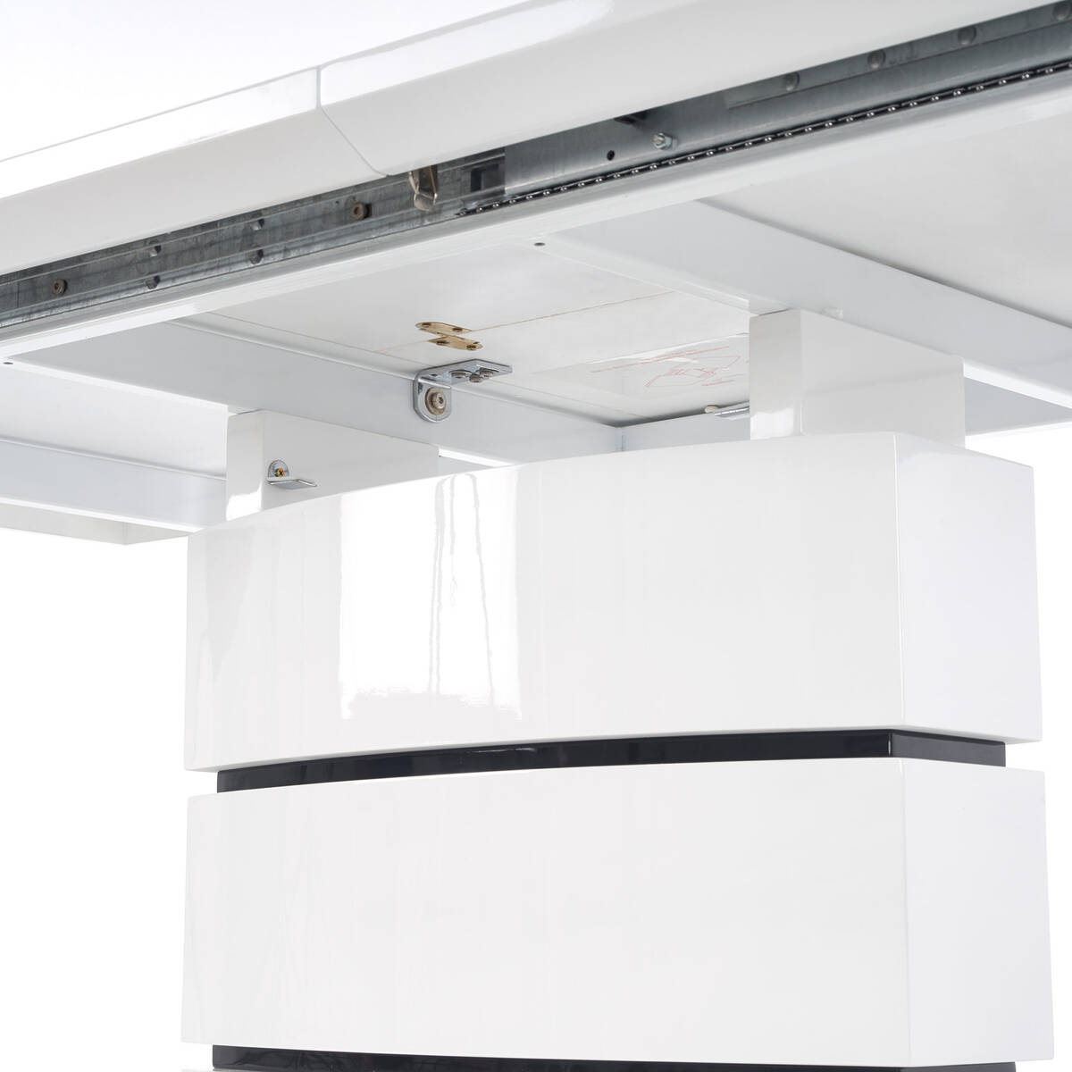 Правоъгълна трапезна маса с опция за разтягане Стил. Комбинация от бял лакиран МДФ и стомана.