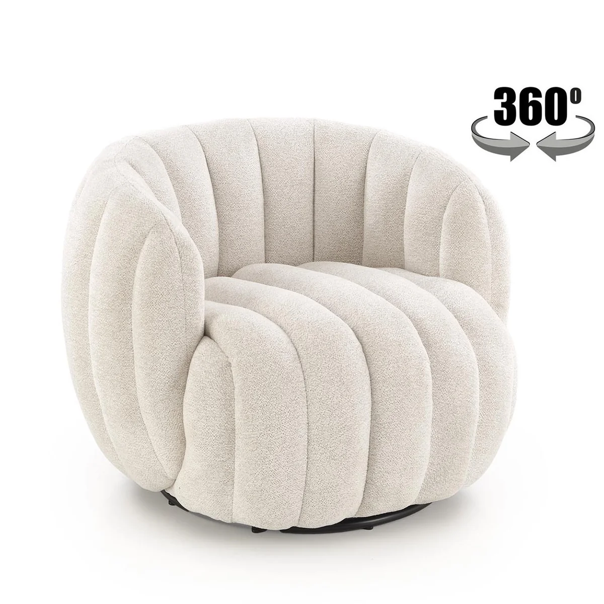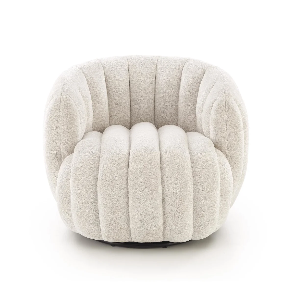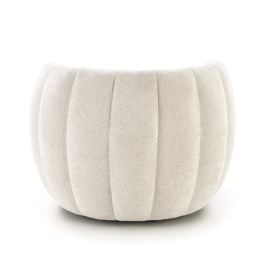 Изработен е от мек текстил в кремав и тъмнобежов цвят и основа от праховобоядисана стомана, предлага уют и стил във всяко пространство.
