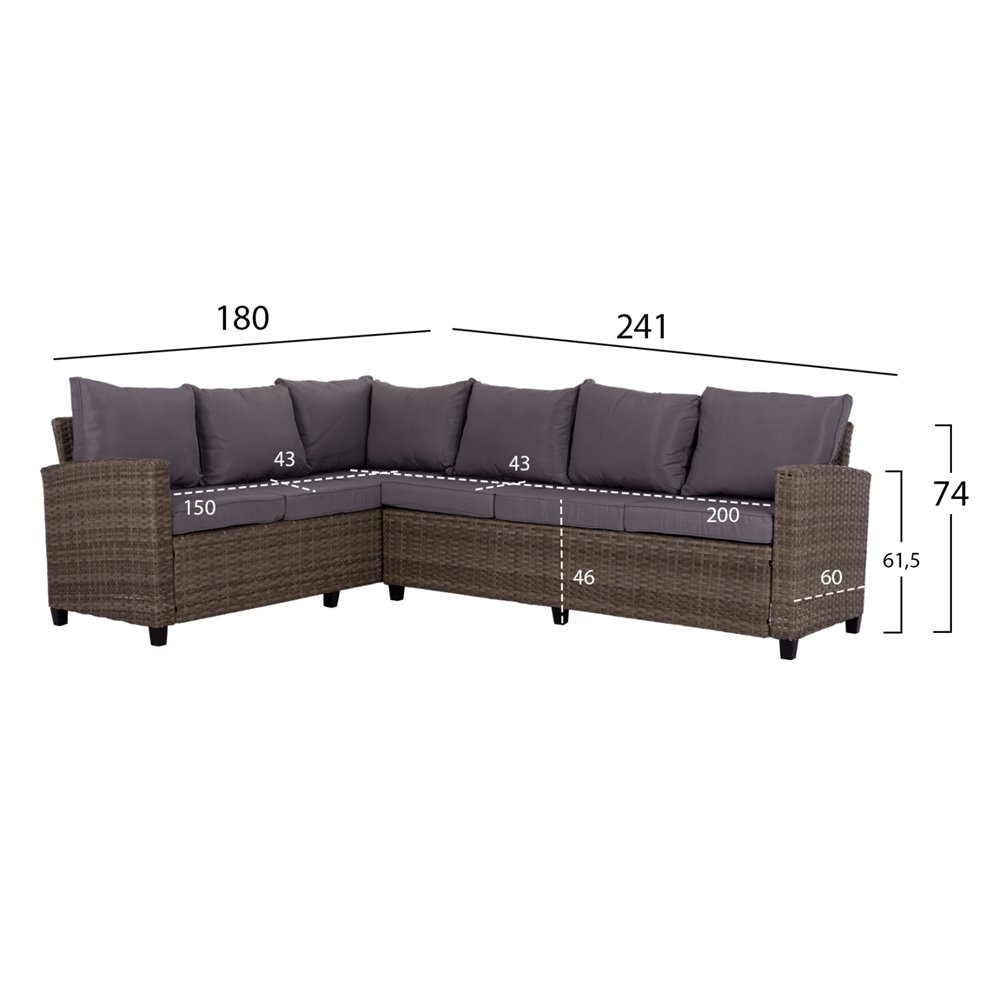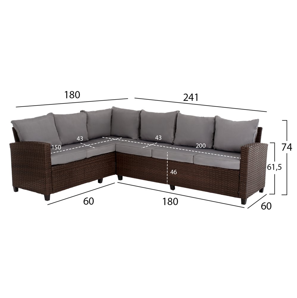 Ратанов градински сет от 5 части с ъглов диван Nicea (2 цвята)