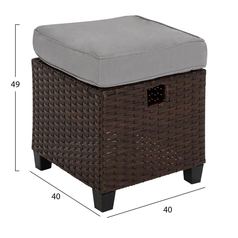 - Материал: стомана, синтетичен ратан, текстил, стъкло