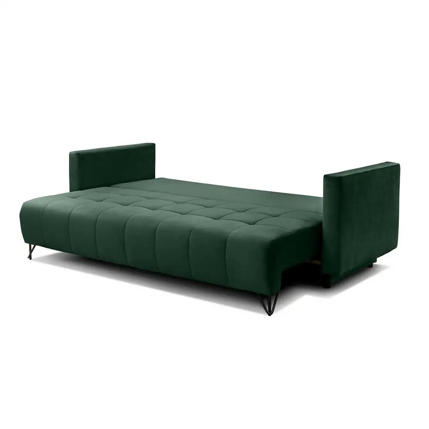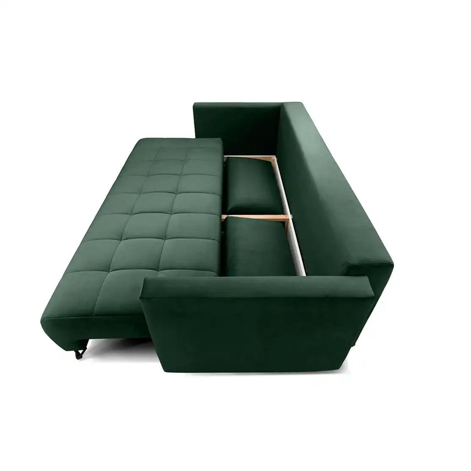 Този модерен диван съчетава функционалност, комфорт и издръжливост, като осигурява удобно място за почивка през деня и практична функция за сън през нощта. Вградената ракла за съхранение предлага допълнително пространство за организиране на вещи.