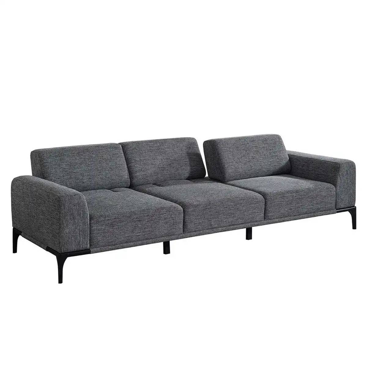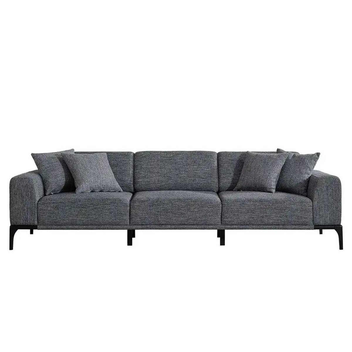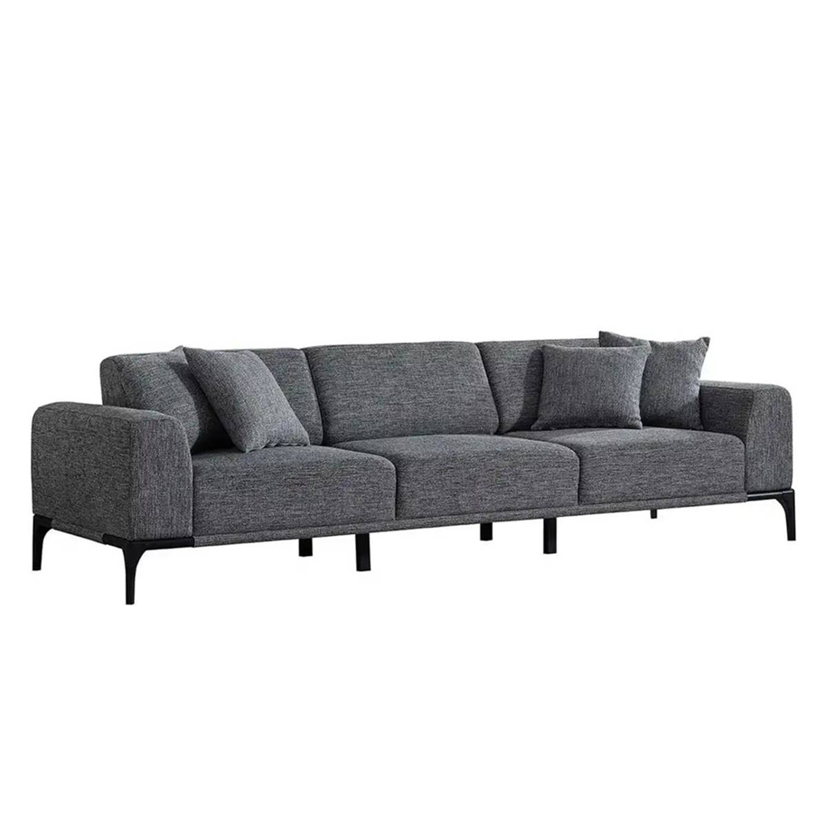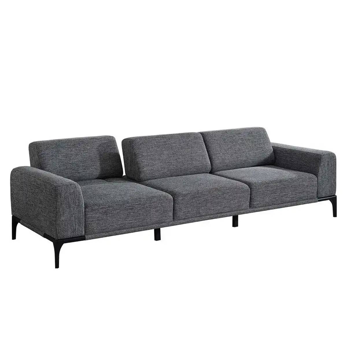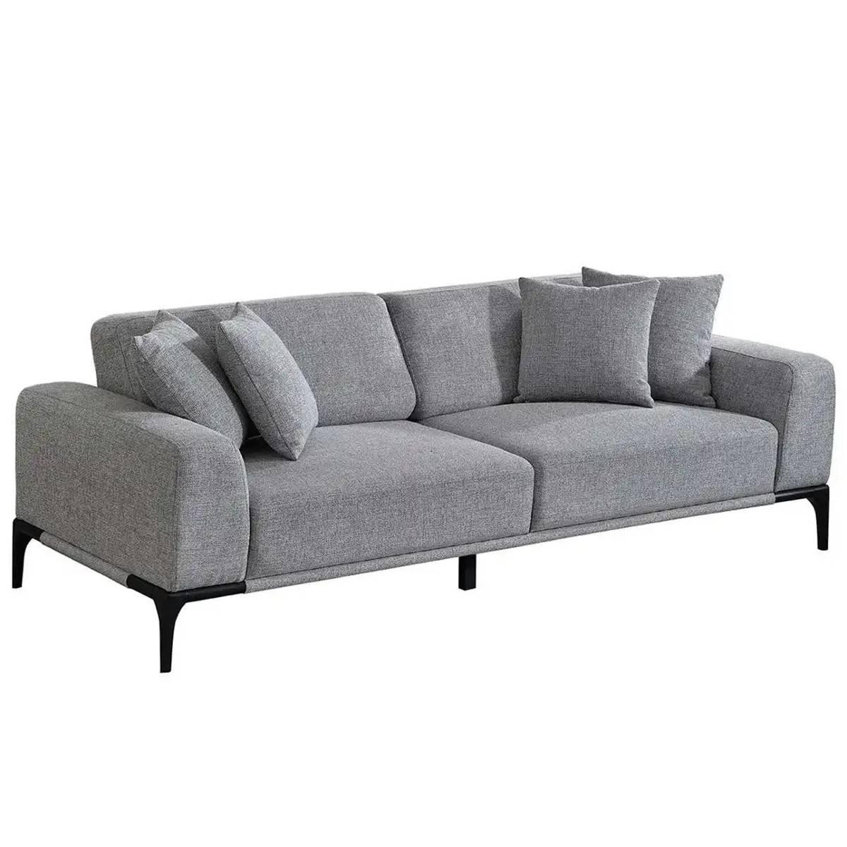 Триместен сив диван с подлакътници и метални крачета