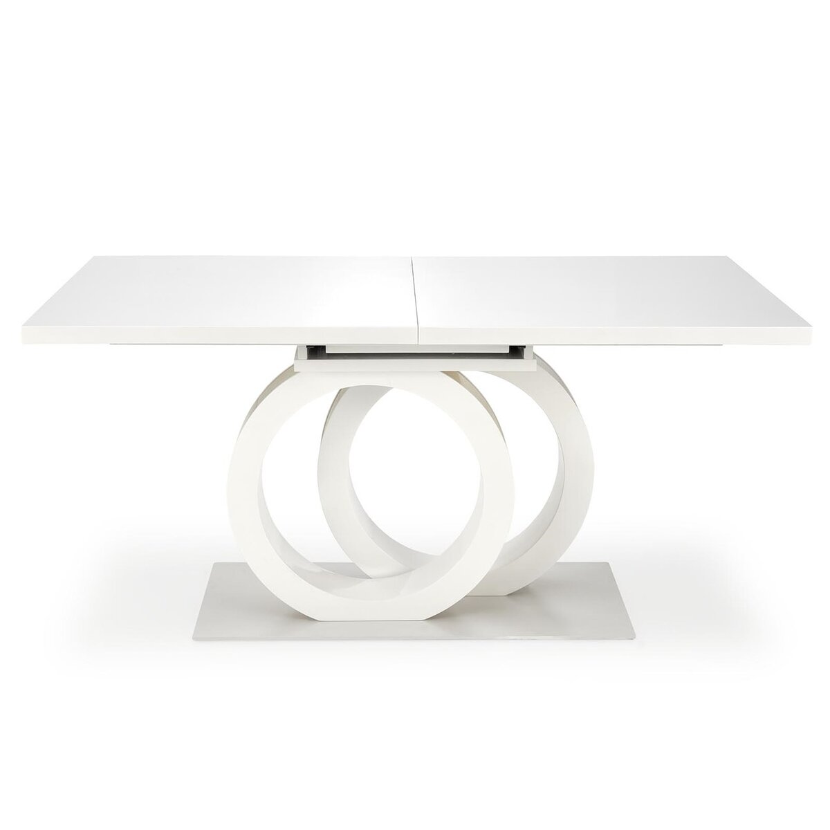 Разтегателна трапезна маса с интересна основа и правоъгълен плот в бяло и златисто, Кортни.