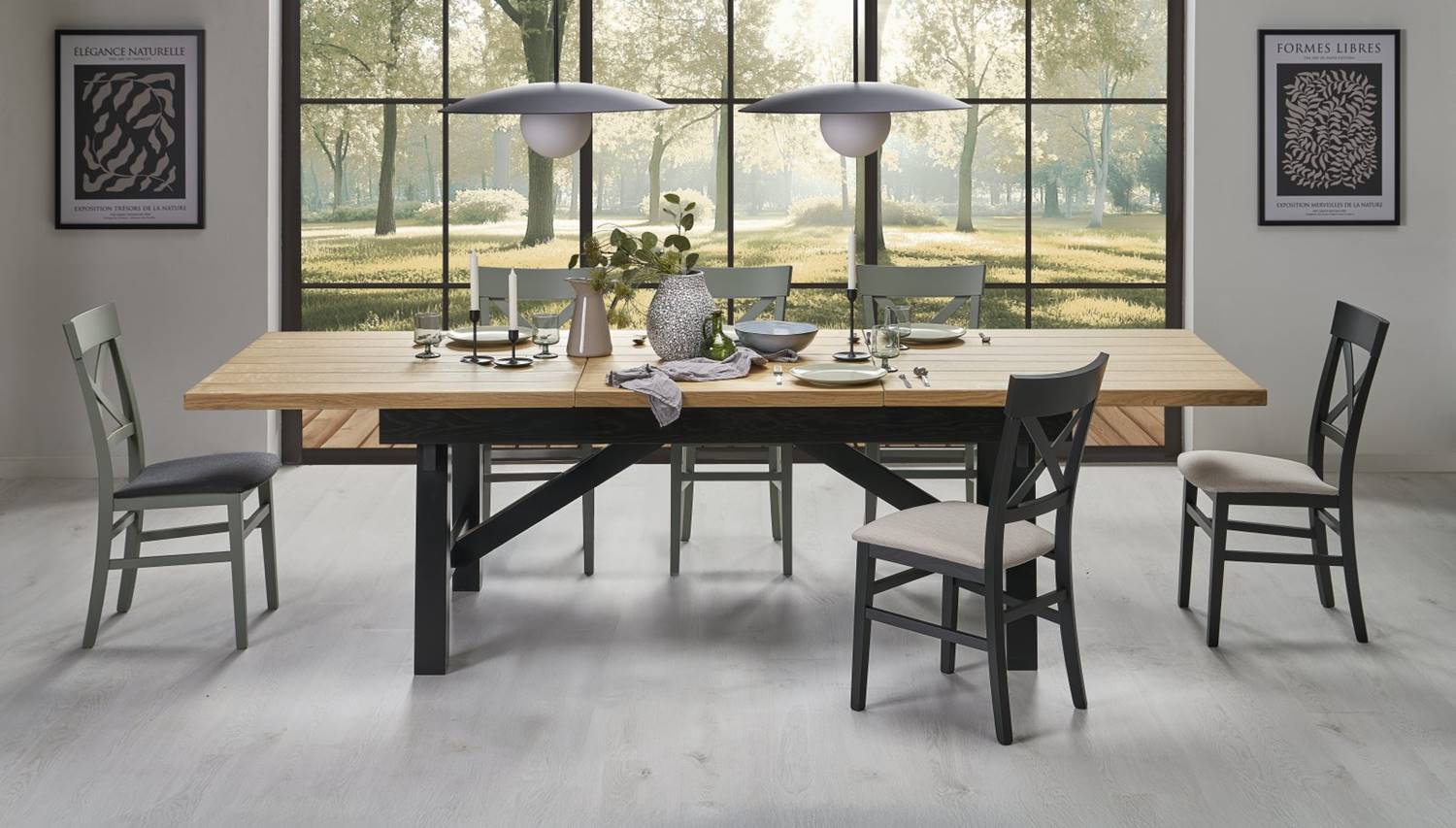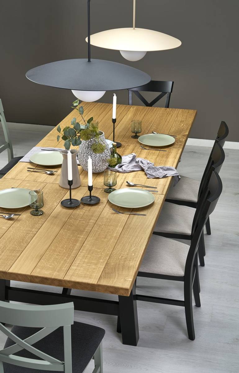 Разтегателна трапезна маса с плот с дъбови ламели Стан