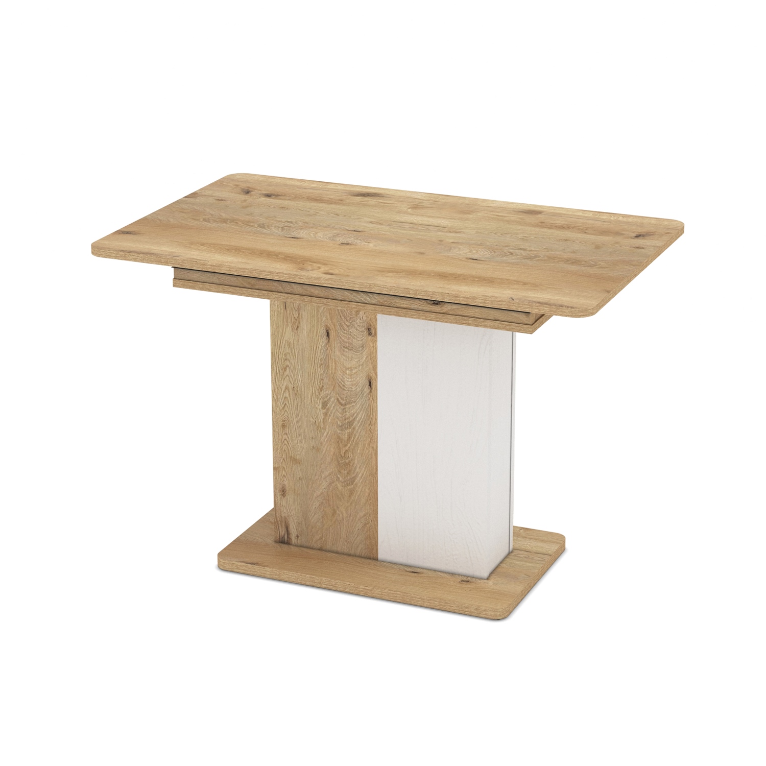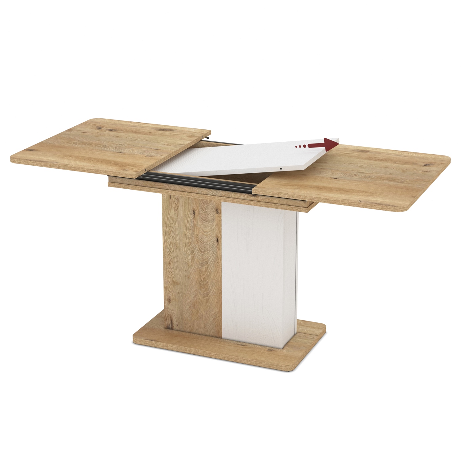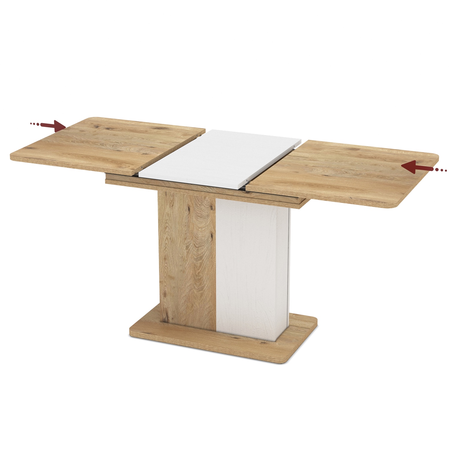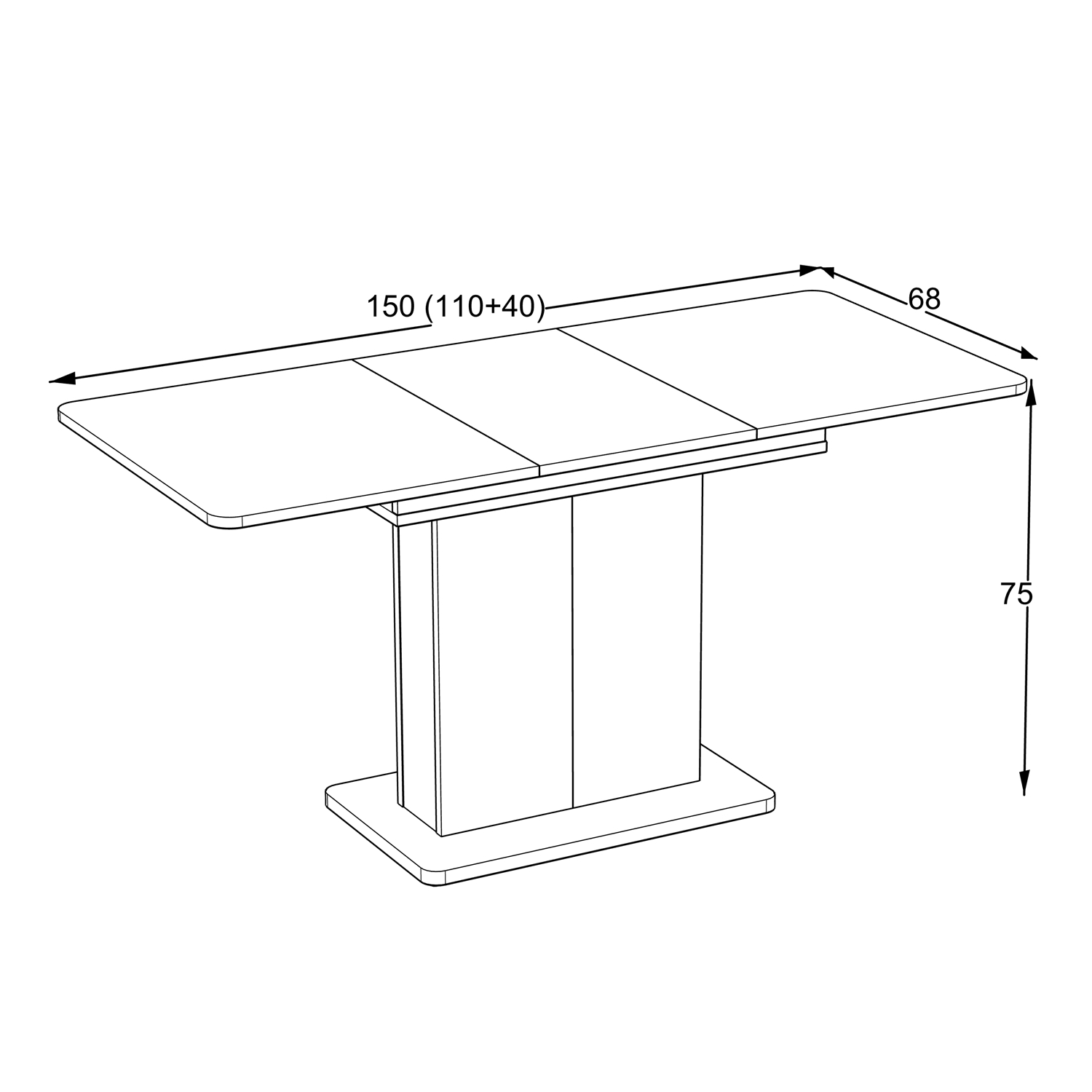 Отличава се с практичен разтегателен механизъм, при който допълнителният плот се прибира дискретно под основния.