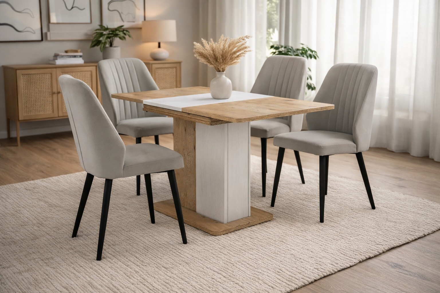 Стабилната основа осигурява надеждност и комфорт при ежедневна употреба, а функционалният дизайн я прави подходяща за всяка трапезария.