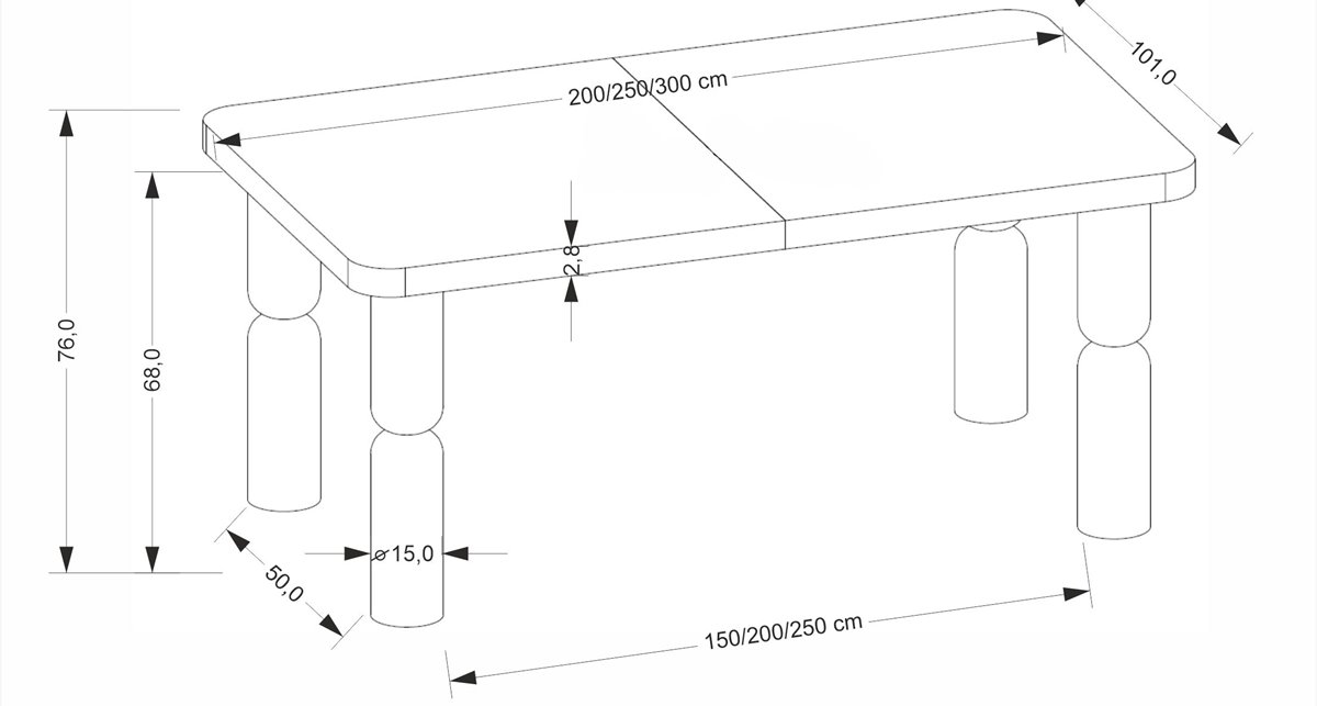 - Размери: 200-300 х 101 х 76 см