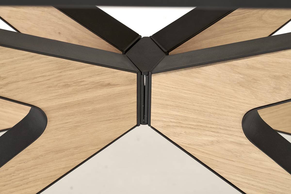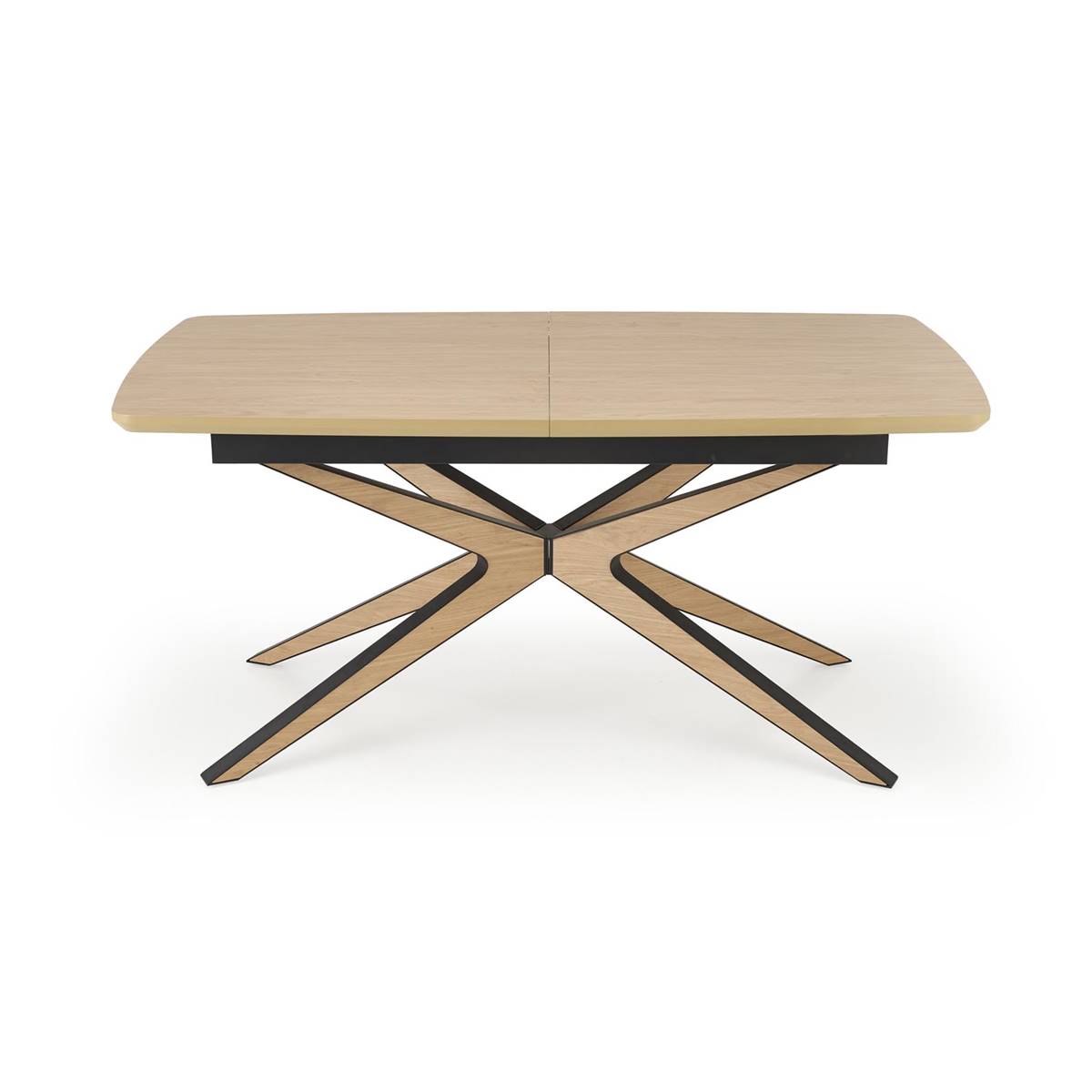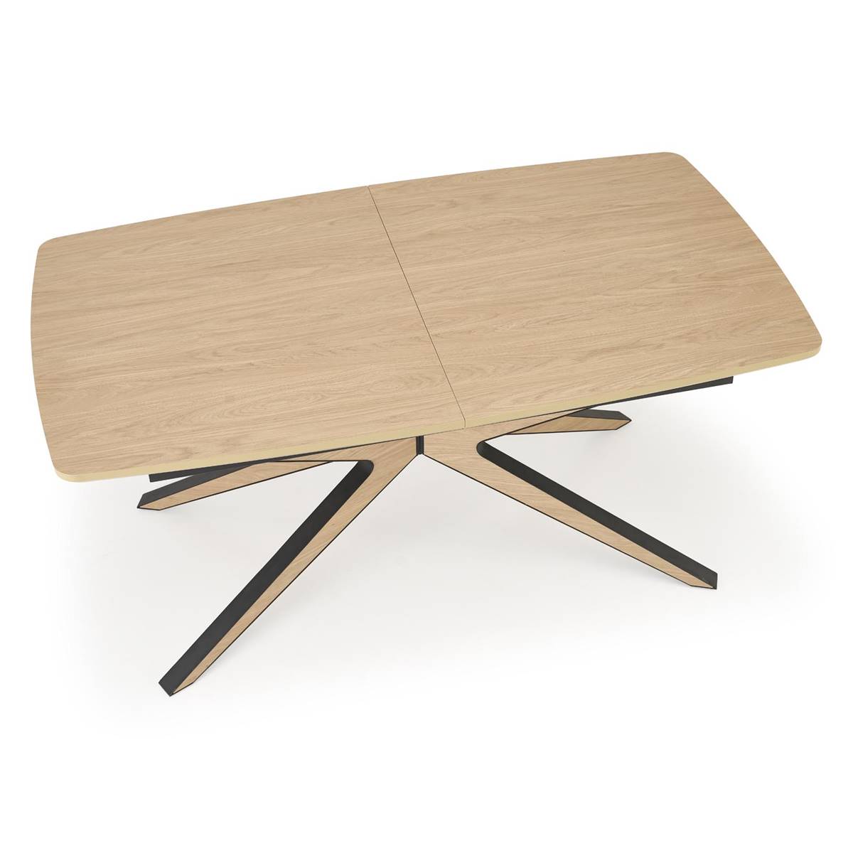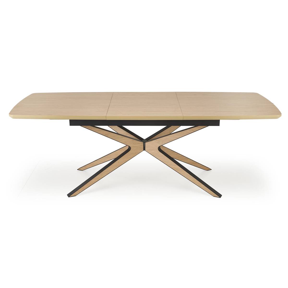 Разтегателна трапезна маса в натурален цвят с нетрадиционна основа Рафи.