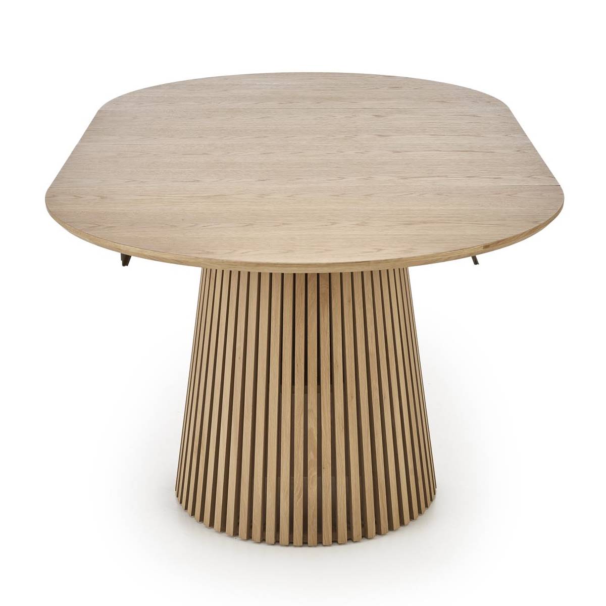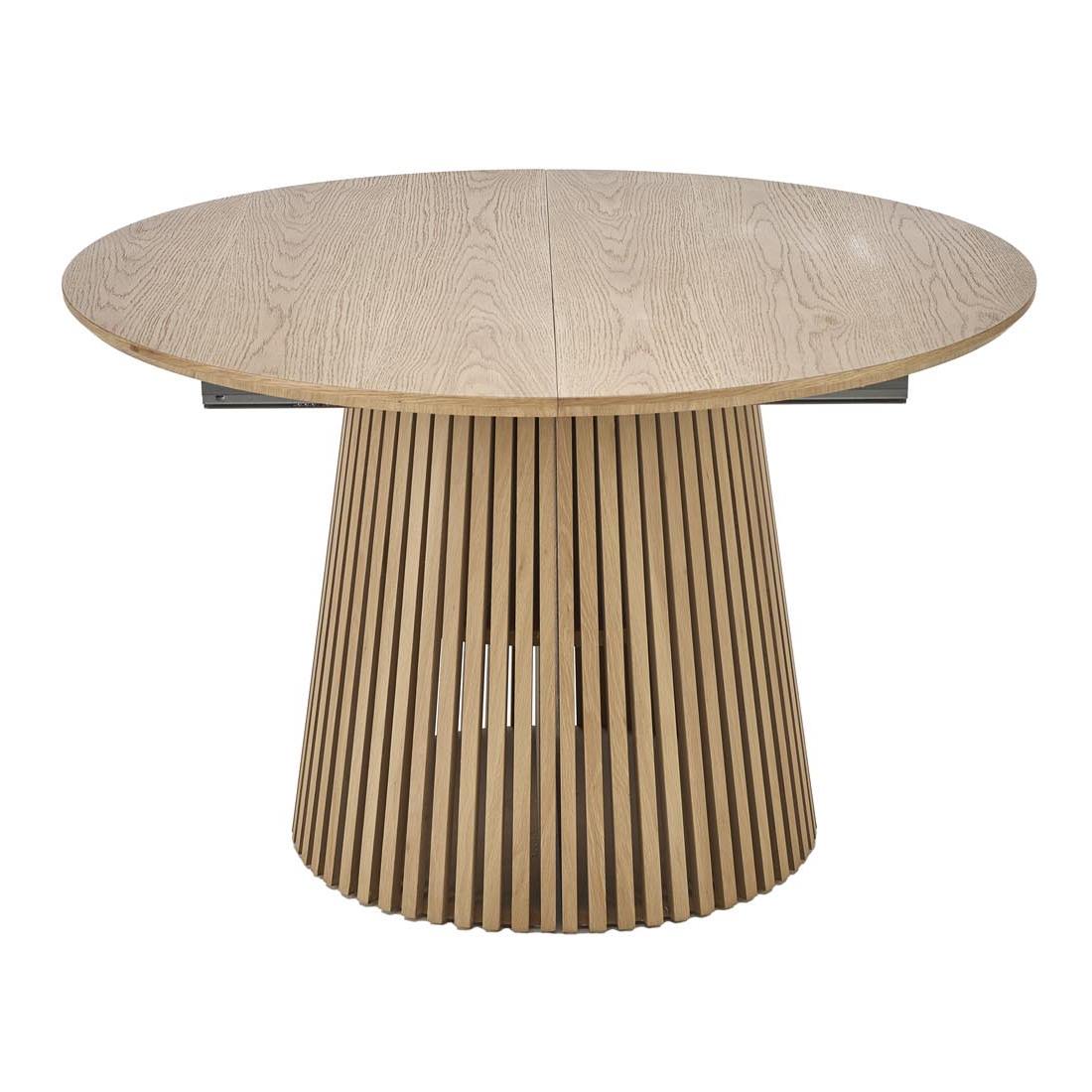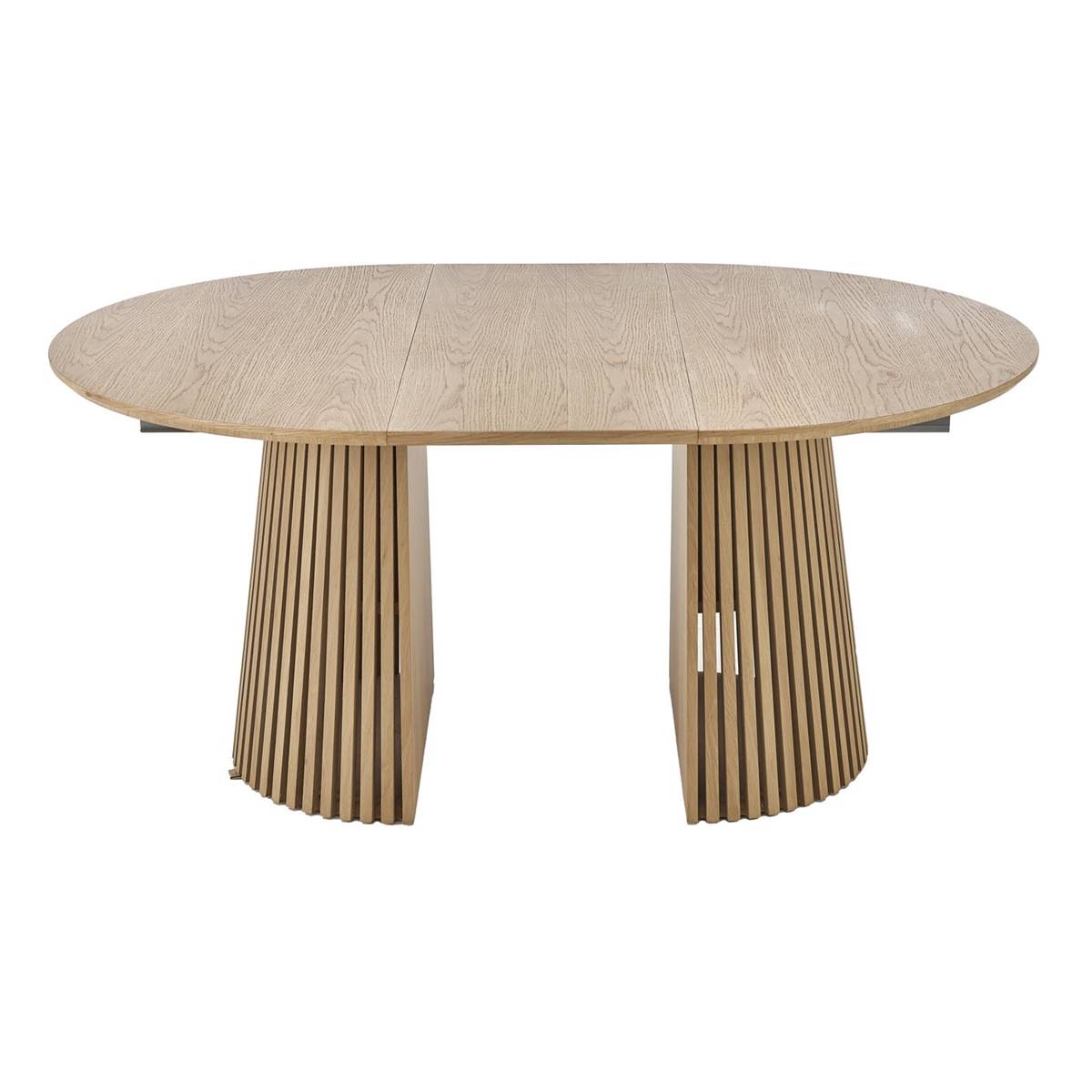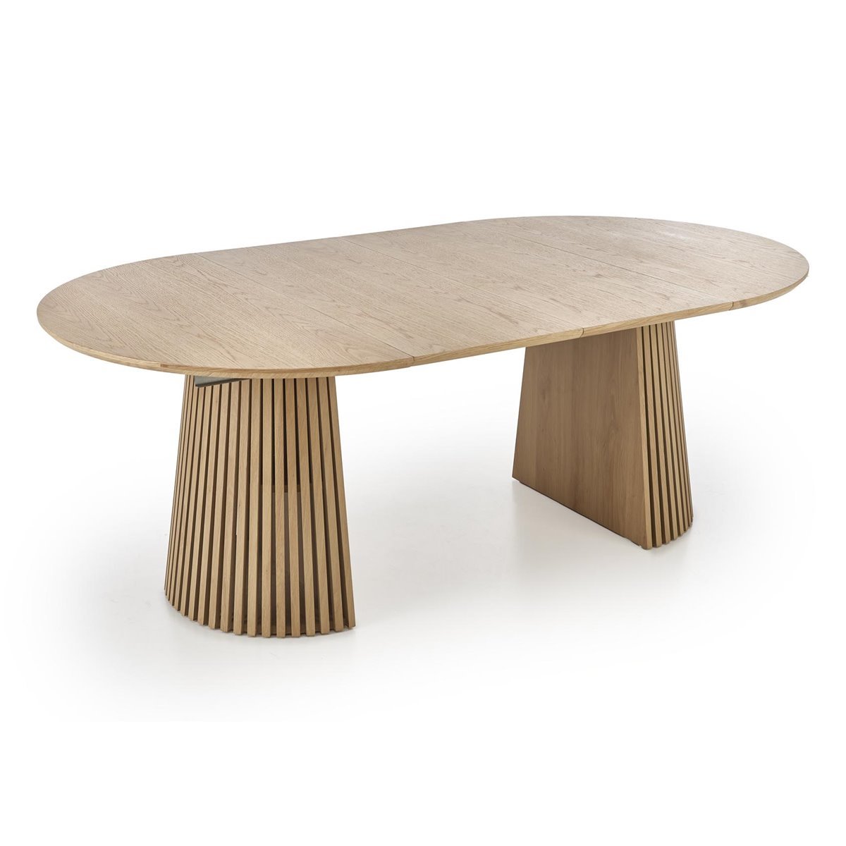 Разтегателна трапезна маса в натурален цвят с модерен и елегантен дизайн.