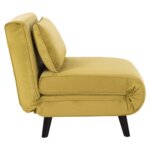 Разтегателното кресло с мека възглавничка е изработено с основа от метал в тъмен нюанс и нежна кадифена дамаска, която се предлага в два елегантни цвята – маслина, розов и тюркоаз.