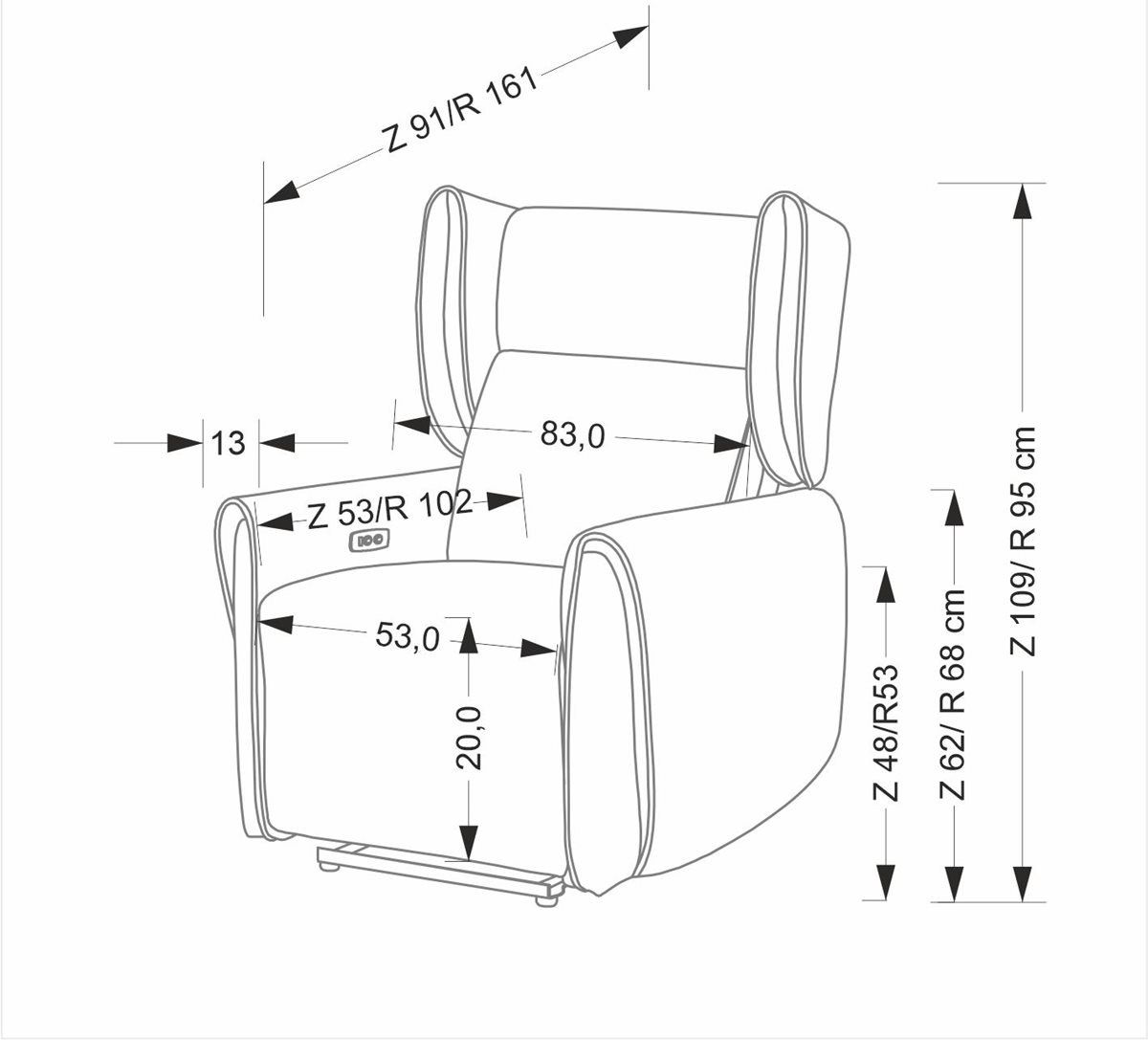 Релакс кресло с електрически механизъм и функция за разтягане.