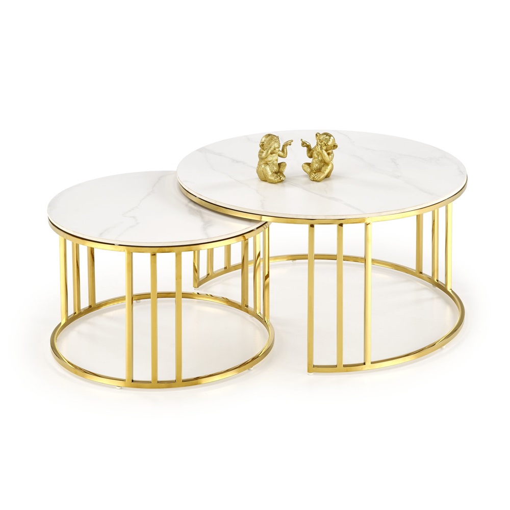 Красив сет холни маси в бял мрамор и златисто, Стило.