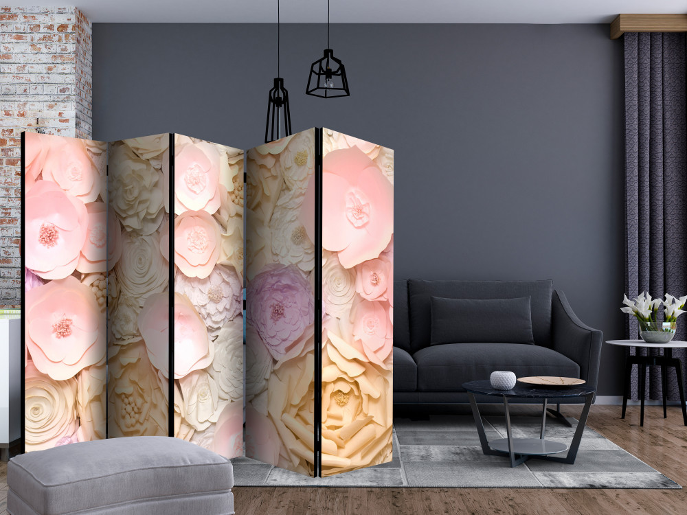 Този сгъваем двулицев параван с букет в розови тонове е оригинална декорация за интериор, решен в романтичен стил. Изработен е от дървена рамка с двустранен печат върху флизалиново платно. Благодарение на оригиналния мотив с качество на печата Full HD, този параван ще придаде неповторим чар на всяко помещение!