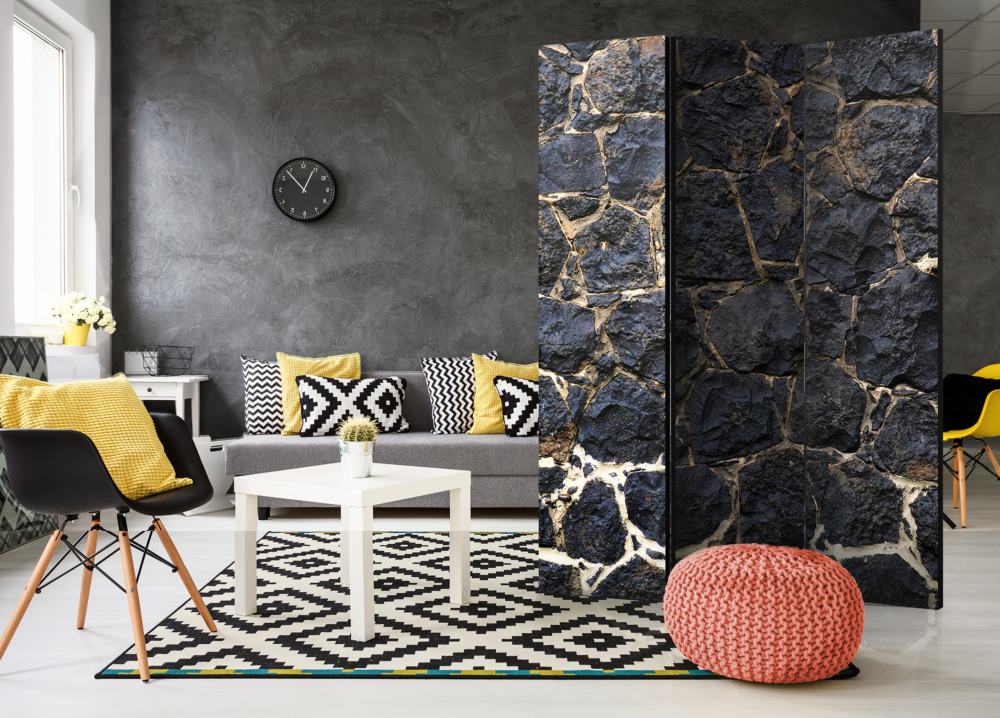 Сгъваем декоративен параван с 3D ефект на черни камъни - 3-крилен