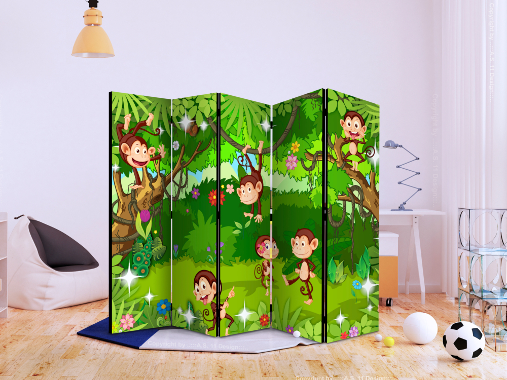 Сгъваем параван за детска стая със забавни маймунки - 5-крилен