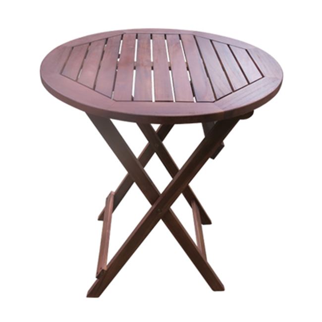 Сгъваема градинска маса от дърво с кръгъл дъсчен плот, която се предлага в два различни размера на плота.