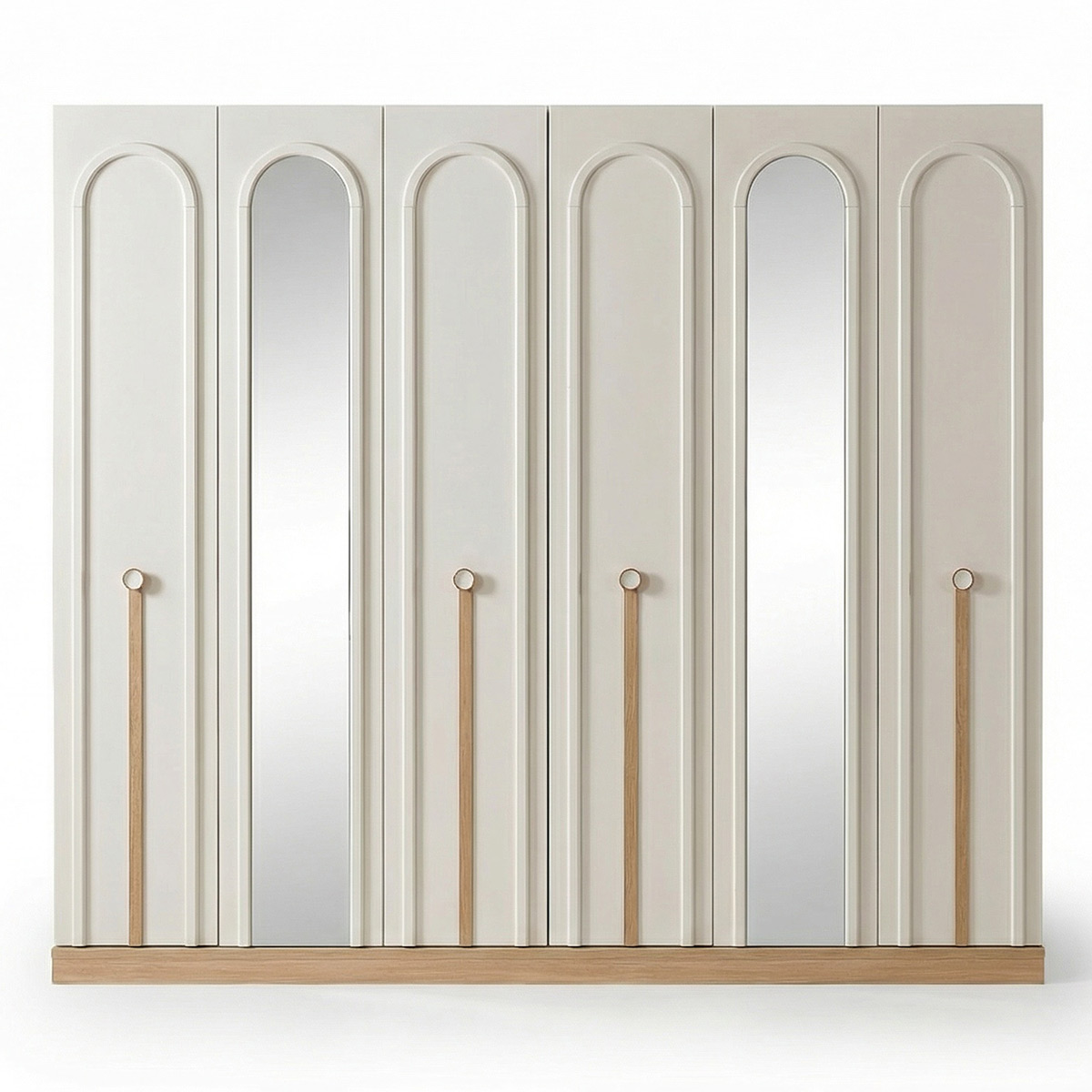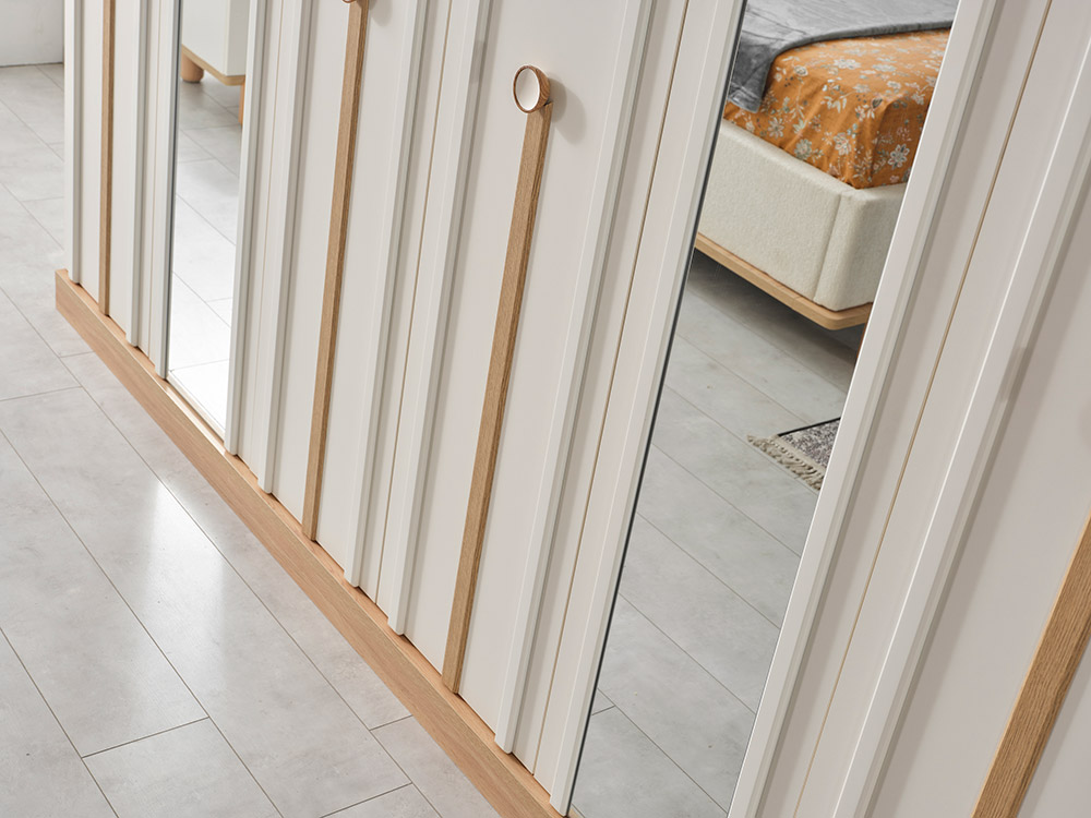 Този шесткрилен гардероб с две огледала е част от спален комплект Bahar.