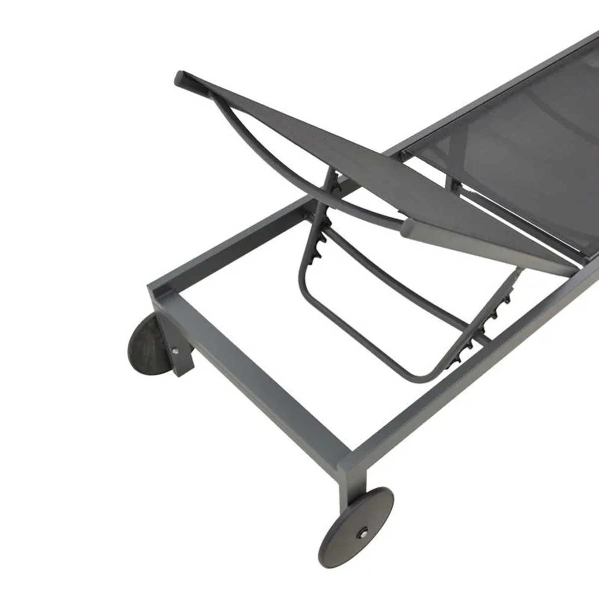 Шезлонг от алуминий и текстил, съчетаващ комфорт и практичност с изчистен модерен дизайн.