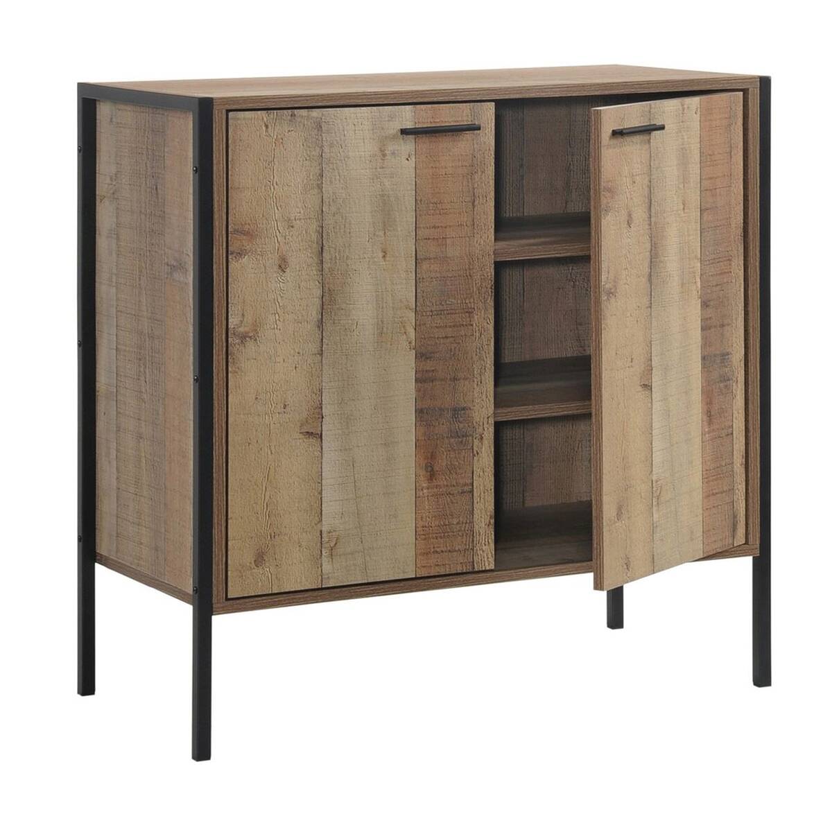 Шкаф с две вратички и три рафта в цвят античен дъб с черна метална основа, серия Пако.