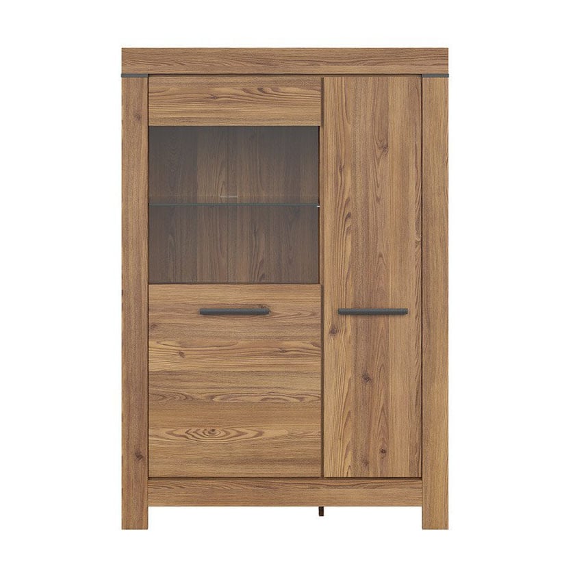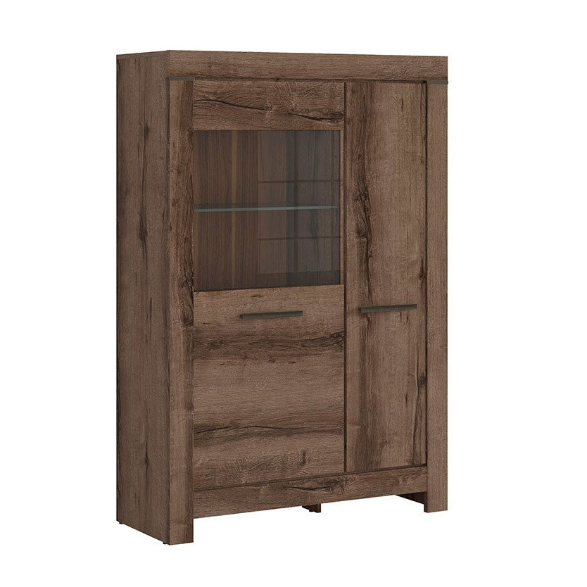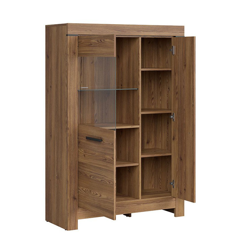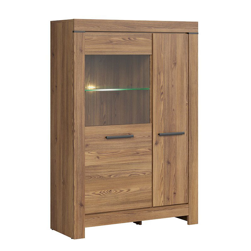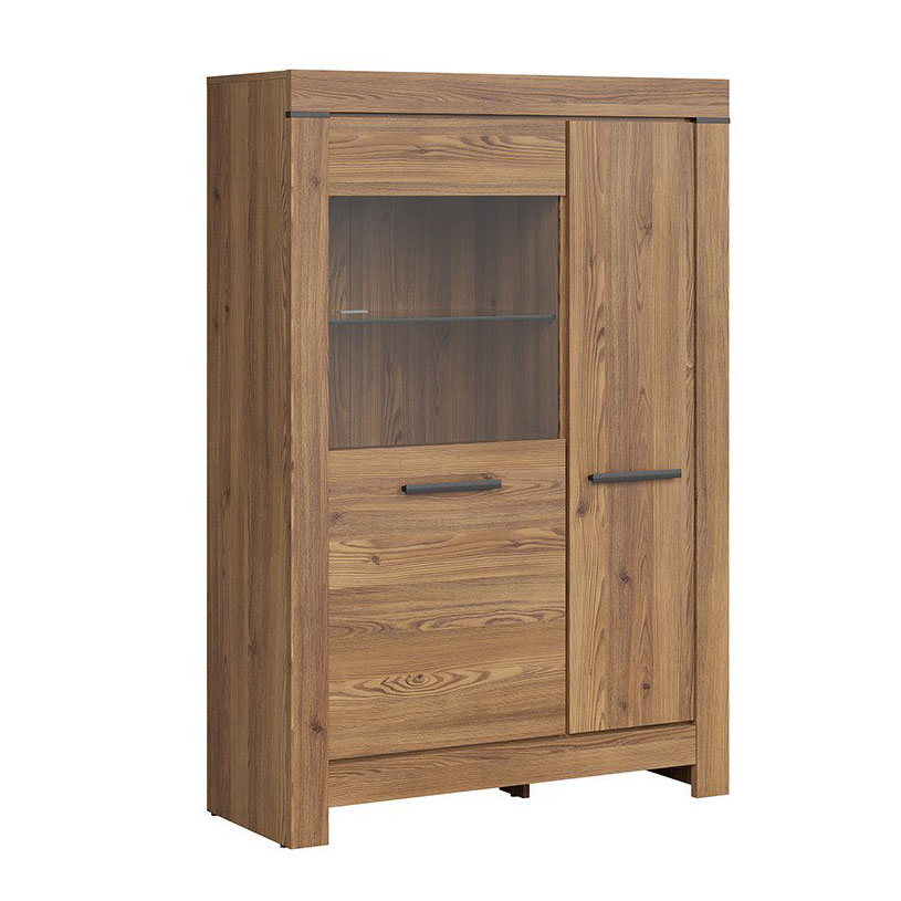 Шкаф с 2 вратички и стъклена витрина Балин - цвят манастирски дъб