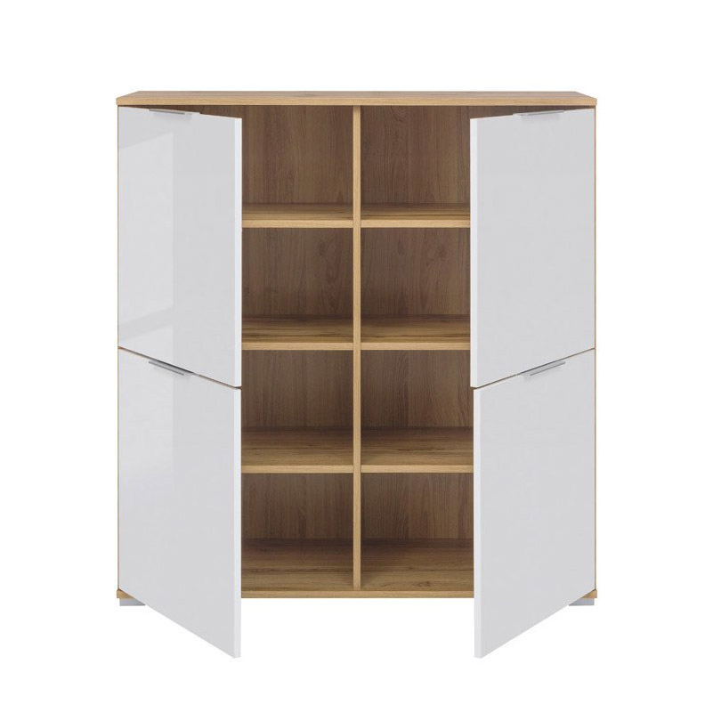 Шкаф с 4 бели гланцирани вратички Зелле - разпределение