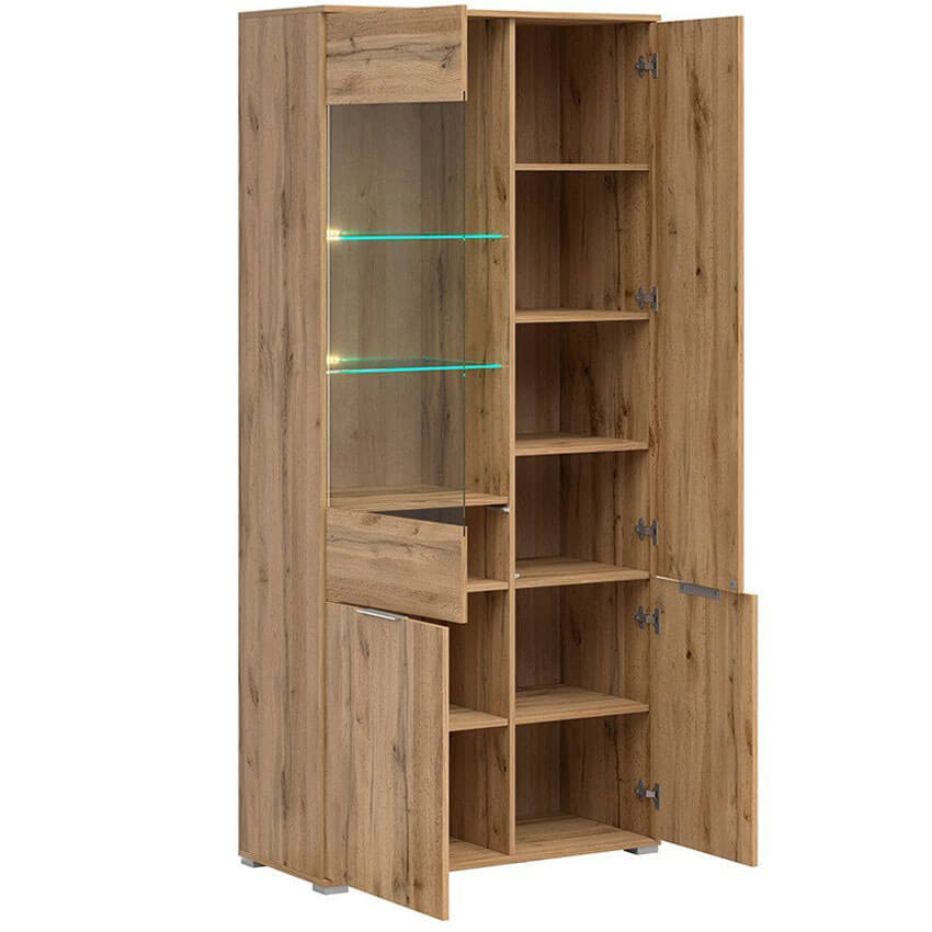 Висок шкаф с 4 врати и витрина Зелле (2 цвята)
