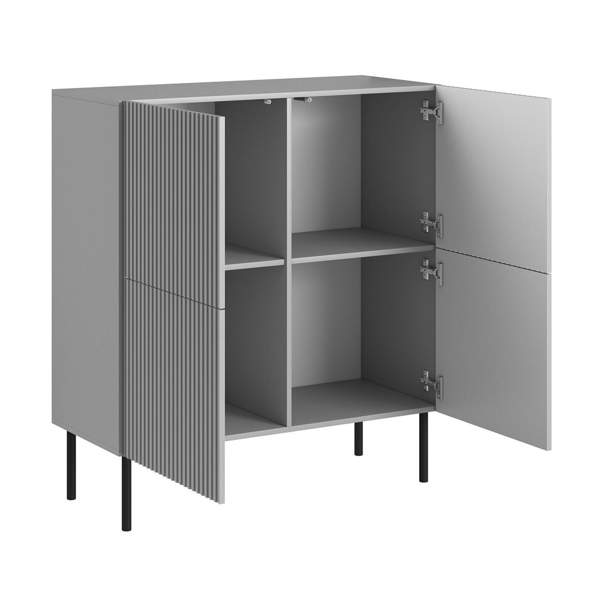 Изработен е от ПДЧ и МДФ с крачета от метал в цветова комбинация светлосиво и черно.