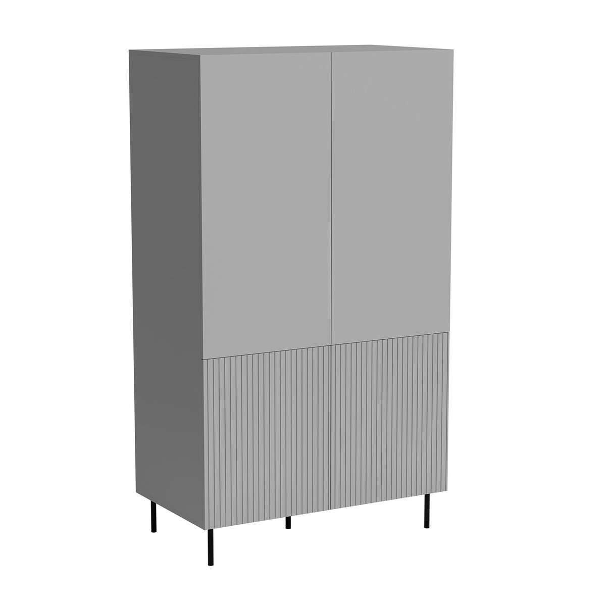 Изработен е от ПДЧ и МДФ с крачета от праховобоядисана стомана в цветова комбинация светлосиво и черно.