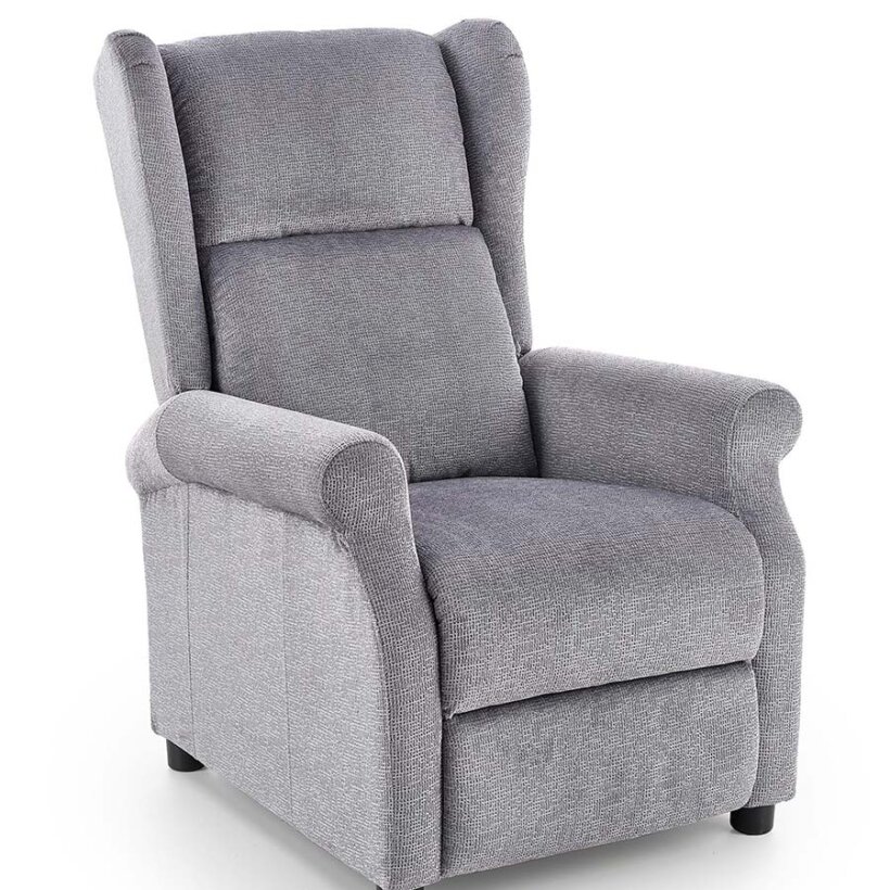 Елегантен фотьойл с дамаска от текстил в сиво или бежово, меки седалка и облегалка и функционален релакс механизъм.