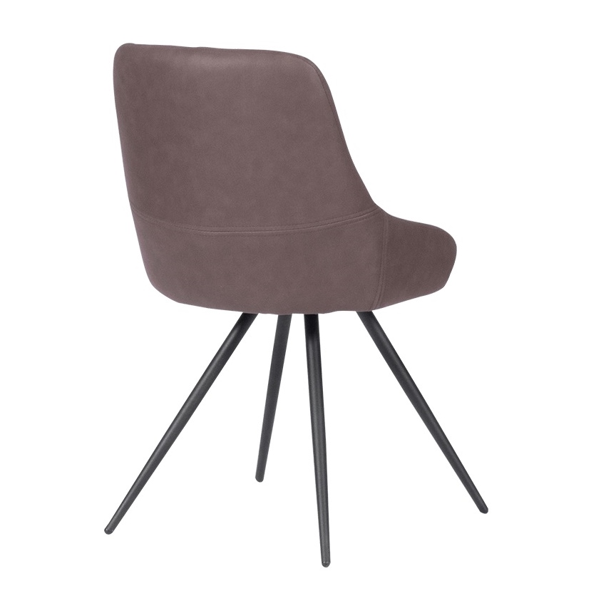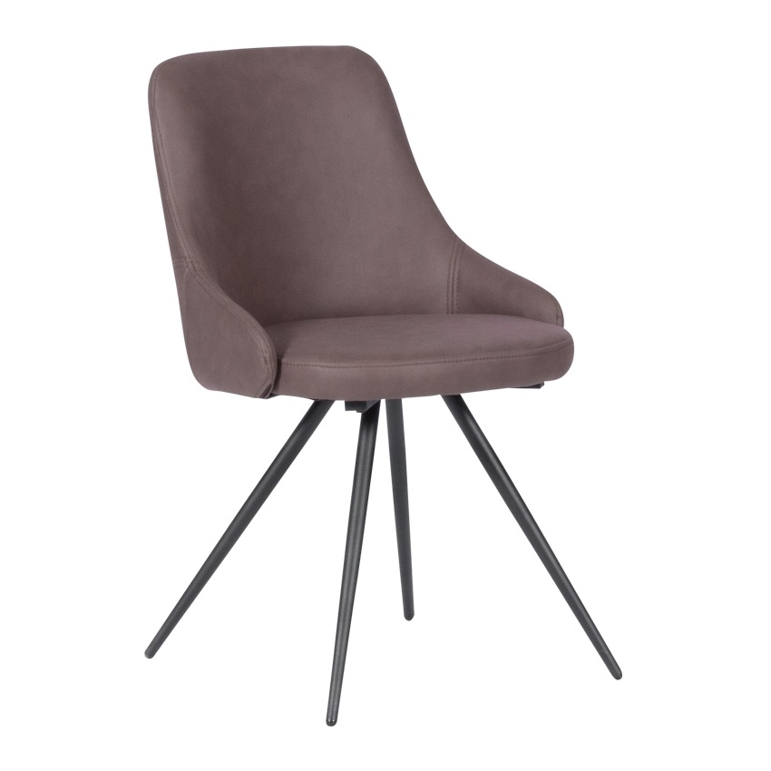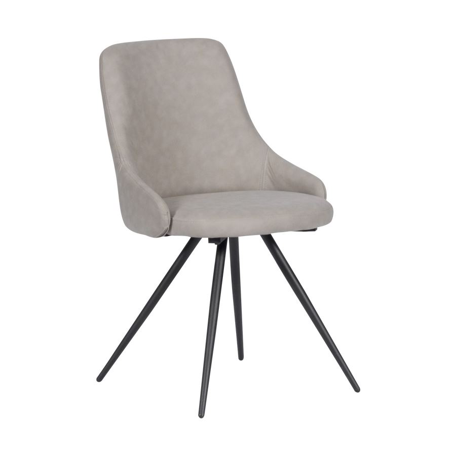 Комфортен сив трапезен стол с метални крака в черен цвят и висококачествена текстилна дамаска, наподобяваща кожа.